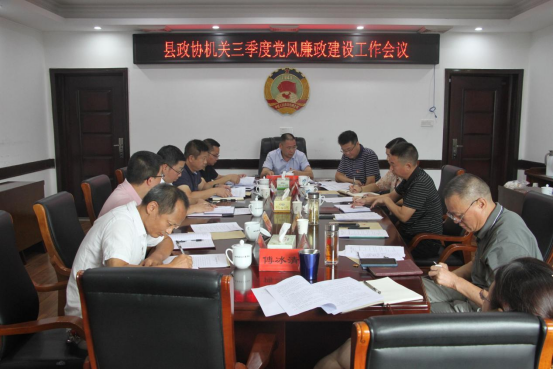 8月23日上午,县政协机关召开三季度党风廉政建设工作会议,县政协党组书记、主席胡能华主持会议。