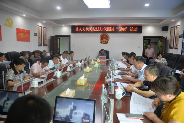 为进一步加强对纪法知识的掌握和运用,以党纪党规教育引导干部职工形成纪律自觉,推进机关清廉文化建设走深走实。6月21日,县人大机关开展纪法知识测试“促廉”活动。县人大常委会领导班子和全部干部职工参加了测试。