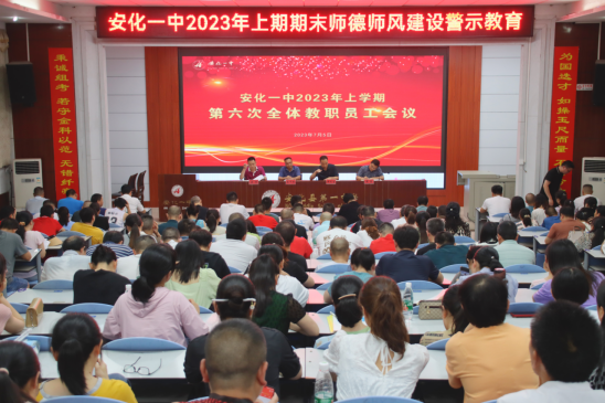 为推进“清廉学校”建设,不断提高教师自身职业道德素养,规范教师廉洁从教,让全体教职工度过一个愉快祥和、风清气正的假期。7月5日,安化一中组织召开2023年上学期期末师德师风专题警示教育大会。