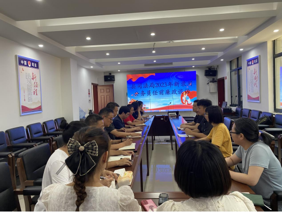为做好新录公务员的岗前教育,帮助树立廉洁自律意识,提升履职尽责能力,7月10日,县司法局组织开展新录用公务员廉政座谈会,对2023年新录用的3名公务员进行集体廉政谈话。