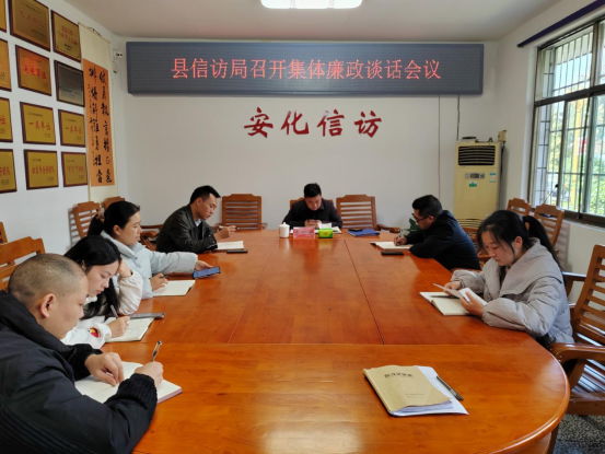 为深入贯彻落实全面从严治党要求,强化局机关干职工的廉政意识、纪律意识,推动信访工作的公正性和高效性。12月17日,县信访局组织开展集体廉政谈话,局党组书记、局长谌万辉对全局党员干部职工开展集体廉政谈话。