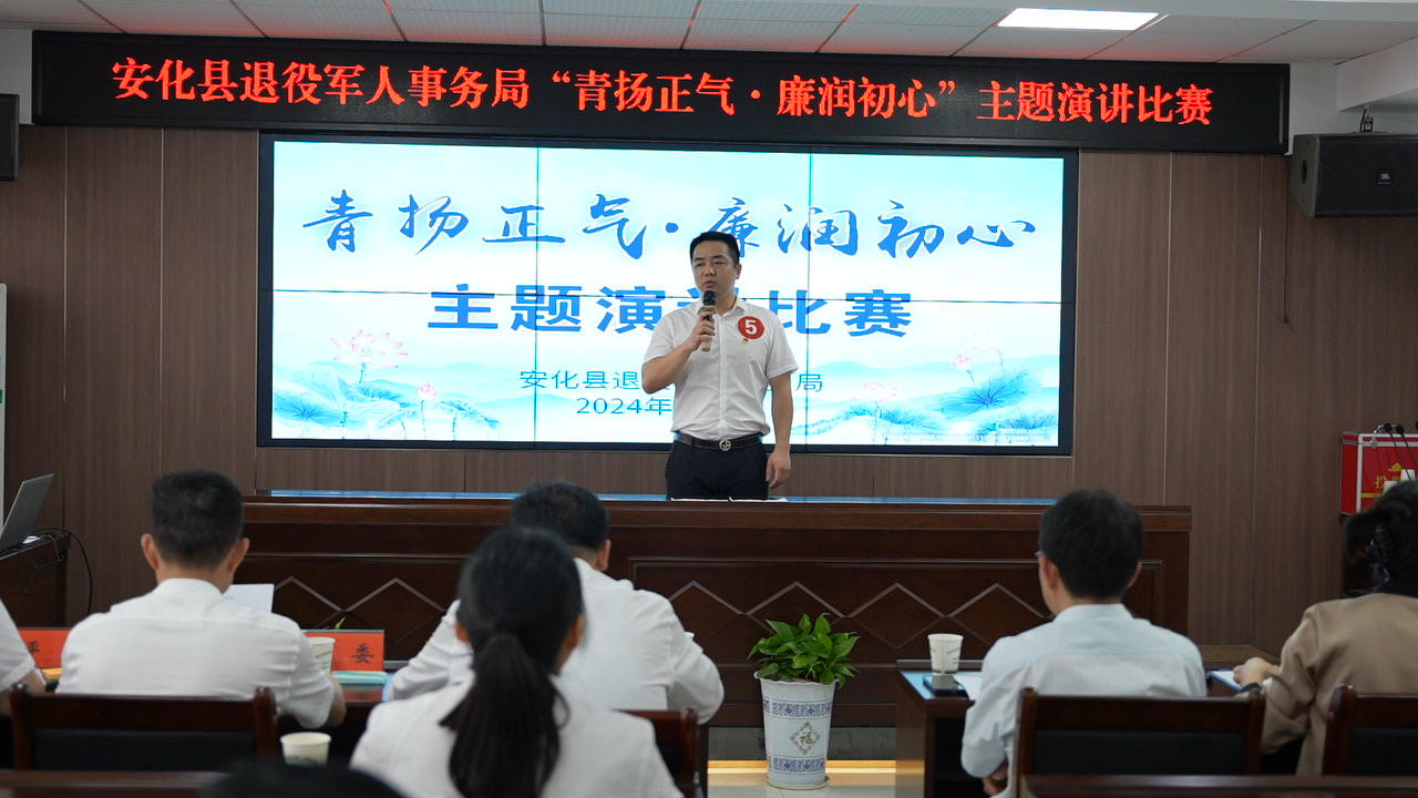 “青春是用来奋斗的,不是用来挥霍的。让我们一起用正气、清廉和初心,书写属于我们的精彩人生……”近日,在安化县退役军人事务局举办的“青扬正气·廉润初心”主题演讲比赛上,青年选手们慷慨激昂地表达着自己尚廉、倡廉的坚定决心。