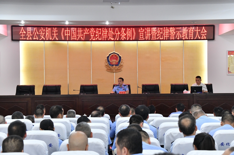 7月16日上午,县公安局组织召开《中国共产党纪律处分条例》宣讲暨纪律警示教育大会。会议由县公安局党委副书记、政委、机关纪委书记胡传玉主持,局党委在家班子成员、局属各单位全体党员同志参加会议。县纪委常委、县监委委员李晔出席会议并作专题讲座。