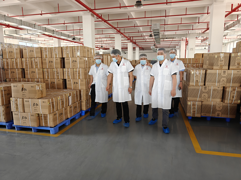 潘文剑一行深入车间和食堂,详细检查了企业生产状况和场所卫生情况,查看了进货查验、生产过程控制、从业人员培训、餐饮具消毒和食品留样等记录,并听取了企业对食品安全责任制的建立、食品安全总监和食品安全员的配备、“日管控、周排查、月调度”制度的落实、从业人员健康管理和风险隐患排查等情况的汇报。