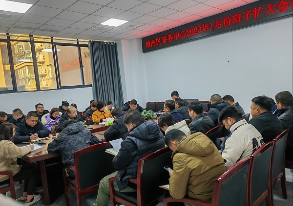 收心聚力铆足劲,共话新年新愿景。1月29日,县城南区事务中心召开2023年一月份班子扩大会议。全体班子成员、内设机构负责人、各驻村工作队共计29人参加会议。