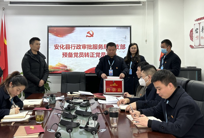 会上,组织观看了《聆听新年贺词,读懂相框里的故事》、《二十大报告解读|使命在肩 勇毅前行》等党员教育微视频,集中学习了《新修订的党章》、《中共中央关于认真学习宣传贯彻党的二十大精神的决定》和《十九届中央纪委工作报告》;等内容,传达了习近平总书记参加广西代表团讨论时的重要讲话精神。按照“2+X”的学习模式,与会人员分别结合今天所学内容及自身工作实际进行研讨发言,现场讨论气氛热烈。 随后组织机关全体党员召开了预备党员转正大会,严格按照个人宣读转正申请书、入党介绍人介绍、支委会通报考察情况、其他党员讨论发言、无记名投票等程序同意两名同志按期转正。 本次大会不仅为党支部注入了新鲜血液,壮大了党员队伍,也使全体党员接受了一次思想上的洗礼。会后机关全体党员表示将继续认真学习贯彻党的二十大精神,牢记使命担当,努力推动党的二十大精神内化于心、外化于行,脚踏实地、奋勇前进,努力为安化县域的高质量发展做出贡献。