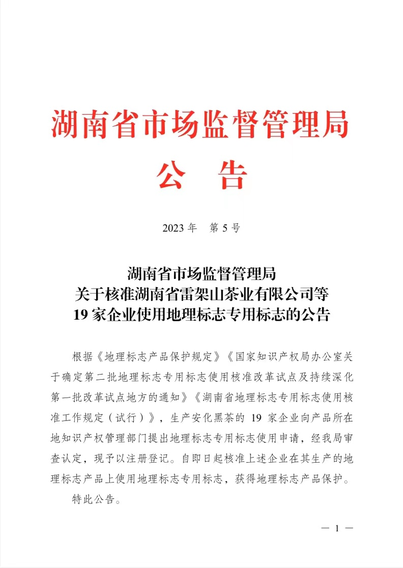 湖南首批!安化19家企业获批使用安化黑茶地理标志保护产品专用标志