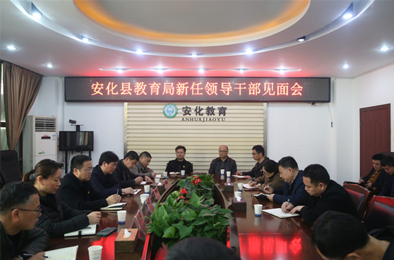 3月31日,安化县教育局召开新任领导干部见面会。县教育局各股室(站、办)负责人参会,县教育局党组书记、局长陈羽成主持会议并讲话。 陈羽成宣读了安化县委组织部任命决定,李丰年任教育局党组副书记、副局长,刘周明任教育局党组成员、总督学。陈羽成指出,此次人事调整充分体现了县委对教育工作和教育系统的关心和重视,刘周明的加入为领导班子注入了新鲜血液和强大活力。领导班子要密切配合、齐心协力,做到抓工作“一盘棋”、干事业“一条心”、谋发展“一股绳”,共同推动教育各项工作取得长足进步。 两位新任职领导表示,感谢组织的厚爱与信任、领导的包容与指导、同事的关心与支持,在今后的工作中会尽快适应新角色、了解新情况、履行好新岗位职责,务实创新、努力工作,为安化教育高质量发展贡献自己的力量。 陈羽成还对近期重要工作作了部署安排。
