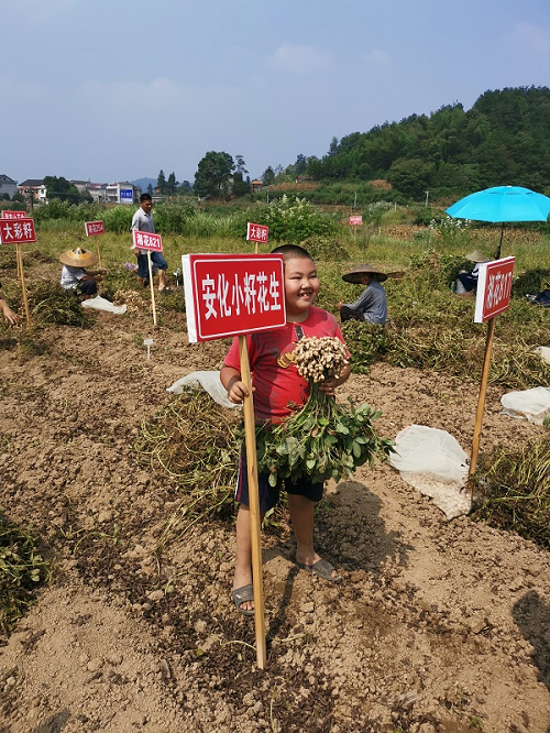 9月11日,在安化县乐安镇水溪村绿尚专业合作社红皮小籽花生种植基地,农民们正在对基地种植的70余亩红皮小籽花生紧锣密鼓抓紧采收,田间地头呈现出一片繁忙丰收的景象。合作社负责人谭少华说:“今年的花生坐果率非常高,产量要比往年高出20%,今年亩均产量达到300斤左右,每亩红皮小籽花生预计收益能达到6000元左右”。 据了解,安化红皮小籽花生是国家地理标志保护产品,核心产区主要集中在安化县乐安镇、梅城镇、仙溪镇和清塘铺镇等前乡片乡镇。据不完全统计,全县目前有48家家庭农场、18家专业合作社专门从事红皮小籽花生生产,其中规模较大的有安化县又香小籽花生家庭农场、安化县蚩尤故里生态农场、安化县绿尚专业合作社、安化县思游花生种植专业合作社、安化县湘乾农业农机专业合作社、安化县建曙鸣生态种养专业合作社等。今年,安化县红皮小籽花生种植面积达到5万亩,并喜获丰收,预计总产量将达到750万公斤,产值达3亿元。