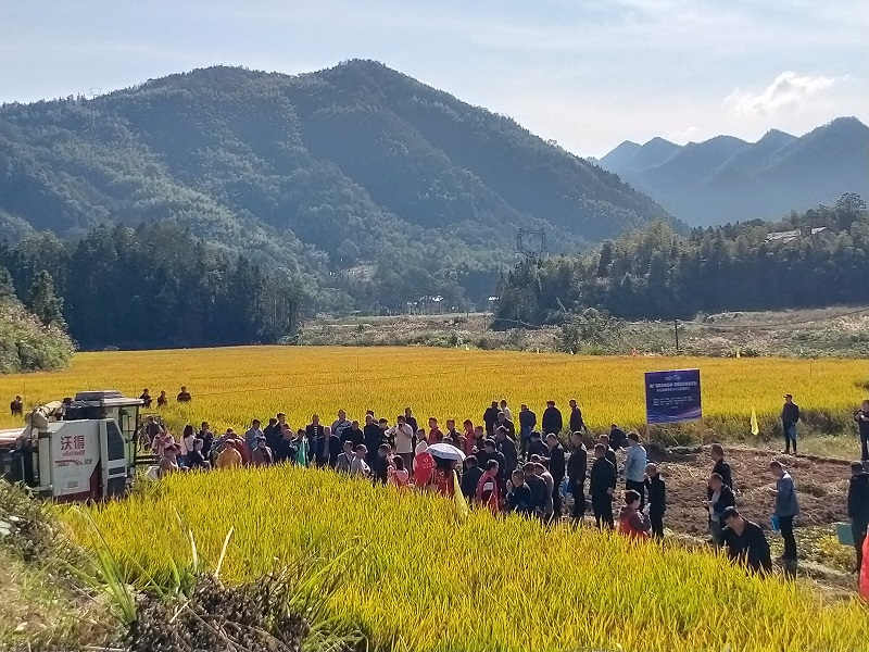 “臻两优8612”测产观摩现场。 测产现场,示范田里的稻株粗壮挺拔,沉甸甸的稻穗粒粒饱满,来自县农业农村局和县发改局的分管领导及相关股站室负责人、湖南省农学会专家、全县23个乡镇农业综合服务中心负责人和种粮大户、粮食收购企业和农资经销商代表、湖南亚华种业有限公司代表共计百余人到场观摩。省农学会组织技术专家以随机抽取的方式,对“臻两优8612”进行机收实测,经称重、测水分、量面积等程序后,测算出“臻两优8612”平均亩产干谷705.3公斤,稻谷镉含量0.05㎎/kg,远低于国家标准0.2㎎/kg,增产增效、降镉效果显著,标志着安化县示范推广的低吸镉“臻两优8612”水稻品种获得了成功。