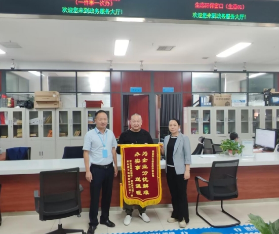 10月23日,安化县凤鸣页岩砖厂、安化清大砖厂、安化县大福福欣特种红砖厂将一面印有“为企业分忧解难 办实事送温暖”的锦旗送到市生态环境局安化分局审批工作人员手中,感谢工作人员对企业的帮助和指导。