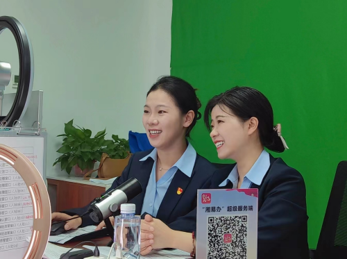 “3、2、1,开播!”随着导播的倒计时,“安化政务”直播厅内两名人社工作人员化为主播,面带微笑对着镜头开始了政策宣讲。