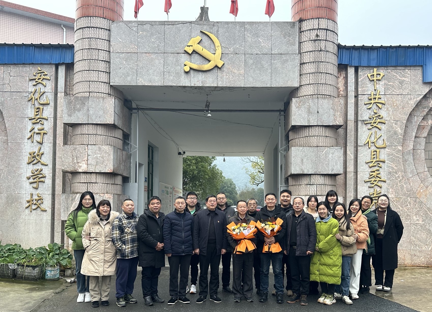 1月30日下午,中共安化县委党校全体干职工在二楼教室召开荣誉退休座谈会暨2023年度总结大会。会议由副校长邓吉祥主持,退休同志陶有元、曾学军应邀出席。 会上,县委党校常务副校长方建国为退休同志陶有元、曾学军颁发退休荣誉证书,教师代表敬献鲜花。两名退休同志深情回顾自己在党校工作的难忘经历,感谢大家的支持和帮助,感恩党校的关爱和培养。大家回忆与两名退休同志一起工作的点点滴滴,纷纷表达“感谢”“不舍”“希望”和“祝福”。仪式现场气氛隆重而热烈,暖意融融。