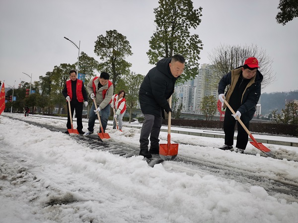 县城南区:迎风冒雪齐行动 铲雪除冰保畅通