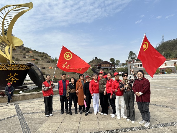 3月20日下午,县城南区团委组织青年先锋队在茶香花海景区开展“国际幸福日”宣传活动。