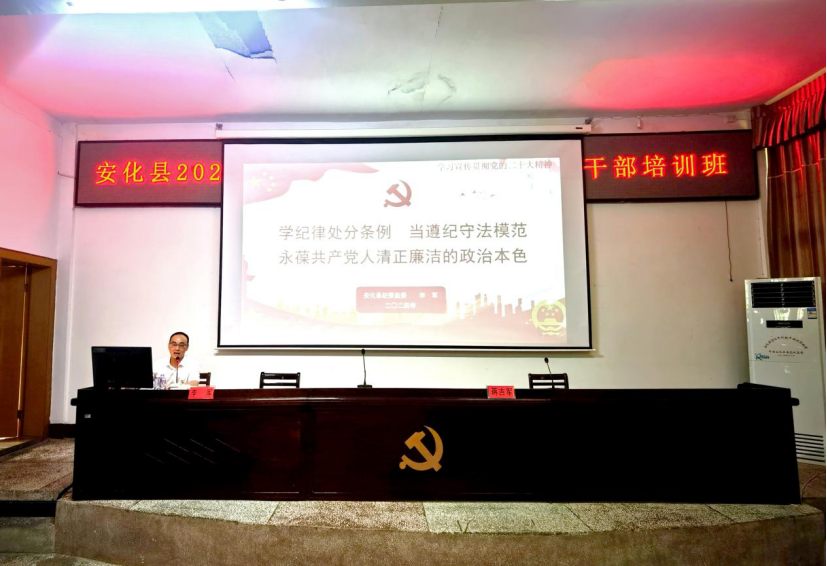 “我们要时刻把纪律和规矩挺在前面,摒弃身外之物,拒绝不义之财,不取非分之礼,抵得住诱惑,经得住考验,守得住根本,牢固树立红线意识,不断增强政治定力、纪律定力、道德定力和抵腐定力。”6月13日,县纪委常委、县监委委员李军在县第十五期中青年干部培训班上以《学中国共产党纪律处分条例 当遵纪守法模范 永葆共产党人清正廉洁的政治本色》为题授课,为64名学员擦亮“清廉”底色。 课程紧扣主题,深入浅出,例证丰富,说理透彻,从中国共产党百年反腐败斗争的主要历程和经验启示、全面从严治党形势、违纪违规违法主要成因等几个方面着手分析,在学习过程中引用大量鲜明数据、鲜活案例,让课程不失生动又干货满满,从而引导学员知敬畏、存戒惧、守底线,永葆共产党人清正廉洁的政治本色,做让党放心、让人民满意、堪当新时代新征程重任的好干部。
