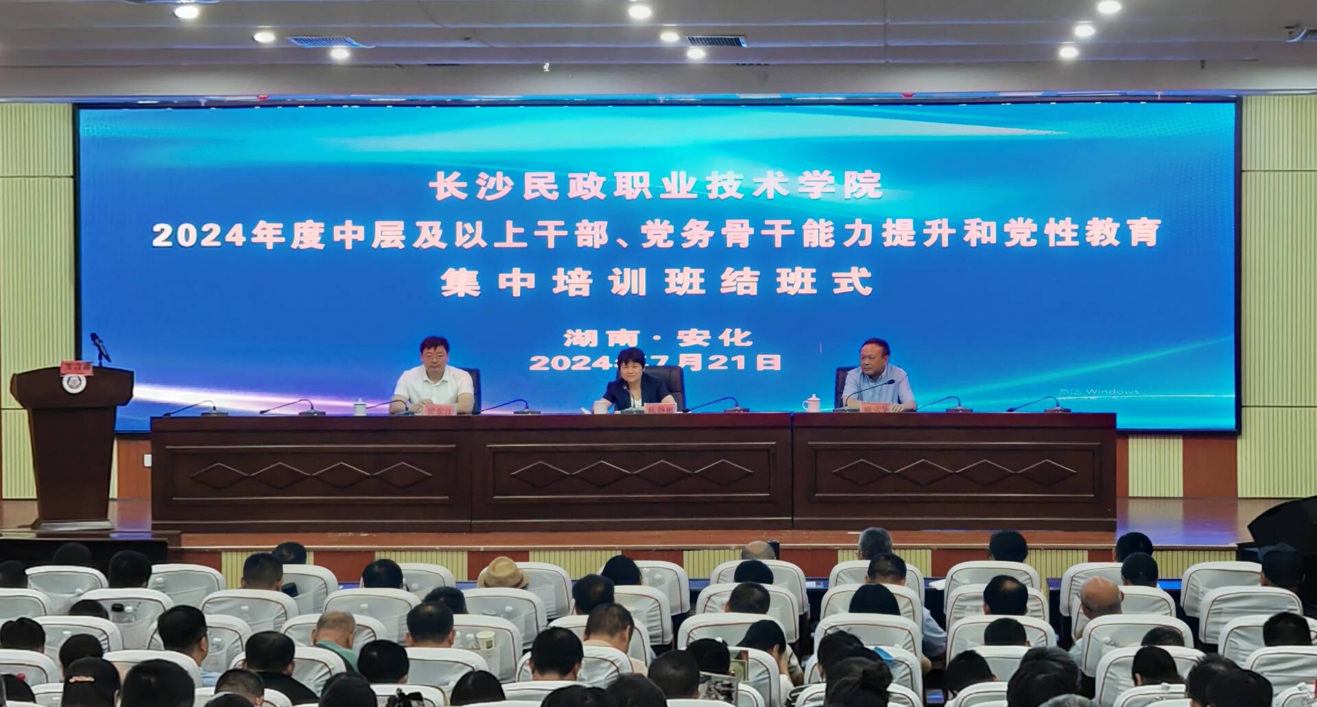 7月21日上午,由中共安化县委党校、安化县职业中专学校(安化黑茶学校)承办的长沙民政职业技术学院2024年度中层及以上干部、党务骨干能力提升和党性教育集中培训班圆满结业。长沙民政职业技术学院党委副书记周立华主持结班式,长沙民政职业技术学院党委副书记、校长陈静彬,安化县人民政府副县长瞿东江出席结班式并讲话。