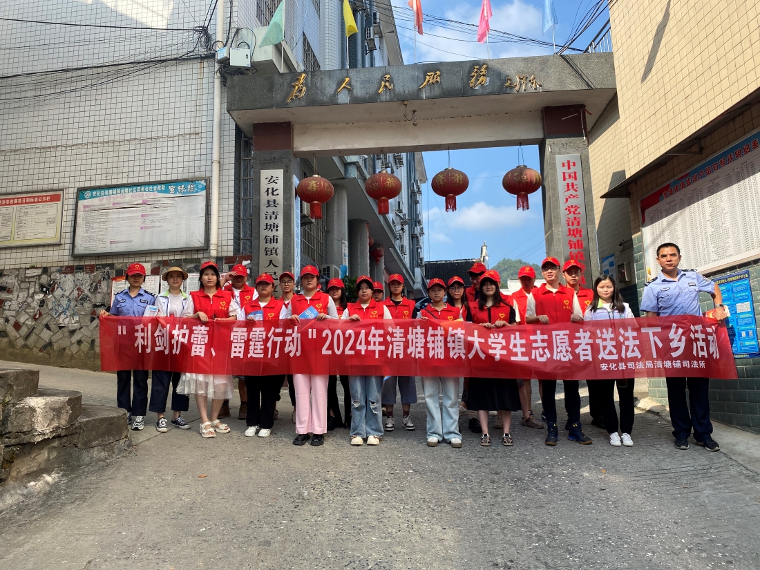 近日,安化县司法局清塘铺司法所组织大学生志愿者开展“送法下乡”活动。