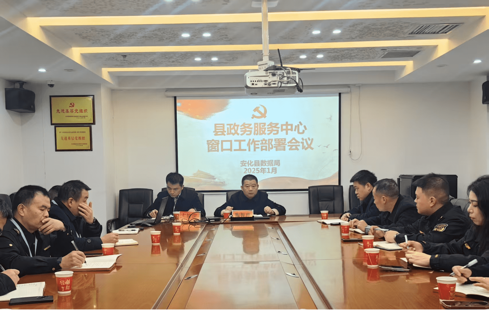 1月22日,县数据局召开政务服务中心窗口工作部署会议,统筹安排年前工作,谋划新一年工作方向。会议由县政务服务中心主任夏俊尚主持,县政务中心全体工作人员、各窗口单位首席事务代表参加会议,县数据局党组成员、副局长陶智理出席会议。 会上,夏俊尚就年前窗口工作进行了简要安排,明确工作要求,确保年前政务服务工作平稳有序开展。随后,陶智理强调,他指出,上年度全县政务服务工作成效显著,“四减”工作深入推进,尤其是“高效办成一件事”中的农村建房一件事办成全省首办件,在全省范围内起到示范引领作用。安化数据工作也成功起势,初显成效,为政务服务数字化转型奠定了坚实基础。 陶智理表示,县政务服务中心要转变理念,进一步树牢过紧日子的思想,积极适应政务服务新常态。要精准反馈每位工作人员的现实表现,并将考核结果运用到评先评优中,激励大家积极作为。此次会议,为县政务服务中心新一年工作指明了方向,凝聚了人心,为持续提升政务服务水平、优化政务营商环境注入了强大动力 。