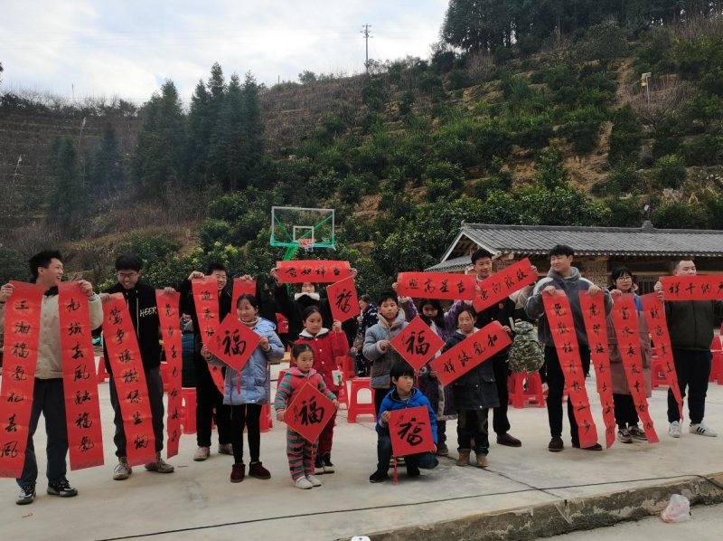 1月18日,平口镇兴果村担水码头美丽屋场处举行迎新春大聚餐活动,共设宴20余桌,邀请了驻村工作队、村支两委成员和在家乡贤,大家共叙乡情、共谋发展、共畅未来,一番其乐融融景象,洋溢着浓浓的节日气氛。 中国书法家协会会员、县卫健局驻兴果村第一书记兼工作队队长刘宗迪表示,本次活动是村民自发组织,自美丽屋场建设开展以来,兴果村面貌焕然一新,大家发自内心的高兴和感激,举行这样的活动,既能使邻里关系更加和睦,同时也能吸引更多人回来共建美丽家乡。 活动现场,刘宗迪向大家介绍了“五自五微一特”美丽屋场创建模式和担水码头美丽屋场建设成果,并组织书法爱好者为乡亲们送上新春对联,把文化振兴引领乡村振兴之风吹进每家每户。