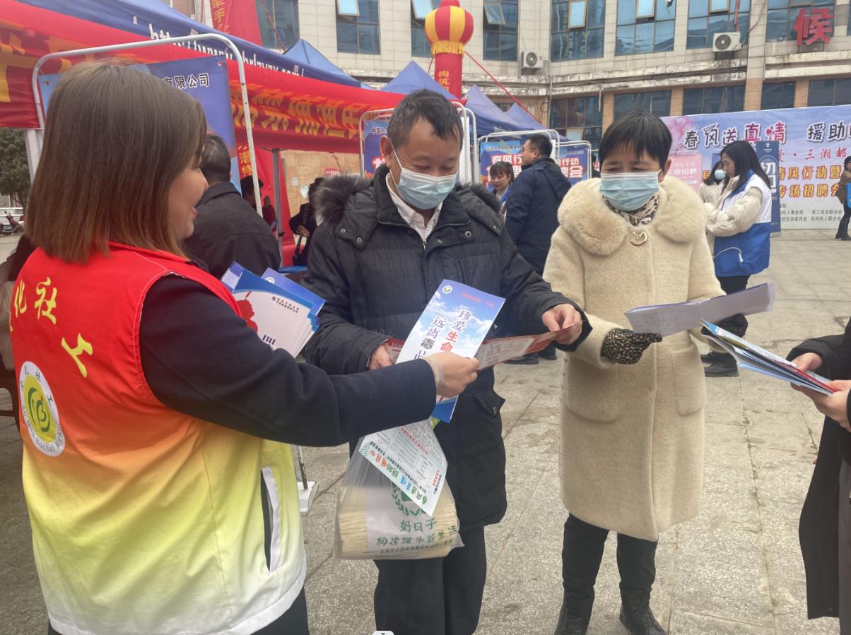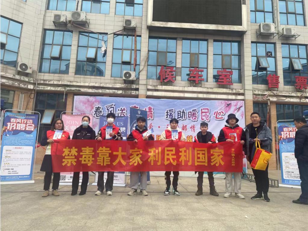 进一步提升辖区群众抵御毒品的能力和主动参与禁毒斗争的意识,营造全民禁毒的良好社会氛围,2月1日,平口镇禁毒办、平口镇禁毒协会联合平口司法所以“春风行动”招聘会为契机,组织大学生志愿者开展新年禁毒防毒知识宣传活动。 招聘会现场,宣传人员通过悬挂横幅、发放禁毒宣传资料、设置宣传展板、现场讲解等方式给来往群众和前来咨询工作岗位的务工人员详细介绍毒品的基本常识、禁毒的危害、如何远离毒品以及相关法律法规等,提醒大家提高防毒意识,警惕各类新型毒品的“美好”陷阱,呼吁大家积极参与禁毒人民战争,争做禁毒“大扫除”的宣传者、参与者、受益者。 本次活动共发放宣传资料500余份,有效提高了居民群众及外出返乡人员识毒、防毒、拒毒意识,扩大了禁毒宣传覆盖面,将禁毒知识送进千家万户,让禁毒意识深入人心。