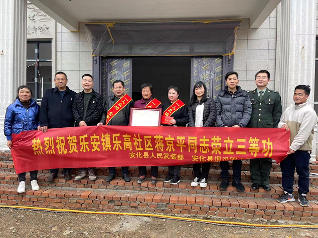 阳春三月,万物复苏,为进一步弘扬爱国拥军的光荣传统,表达对现役军人的关怀和问候。2023年3月23日,县退役军人事务局3名领导同志、乐安镇武装部、乐安镇退役军人服务站工作人员一行走访慰问8户荣立三等功的现役军人家中。 走访慰问活动中,对8名荣立三等功同志家属表示祝贺,并送去喜报和奖金。感谢他们为国家、为家乡赢得了荣誉,并希望他们在部队安心服役,继续在军营中建功立业,再创佳绩。 近年来,安化县人民武装部,安化县退役军人事务局,乐安镇人民政府持续开展双拥共建工作,大力弘扬拥军优属光荣传统,通过送喜报、走访慰问军人军属等举措,将党和政府的关心送到家门,推动全社会形成崇军尚武、热爱国防的浓厚氛围。