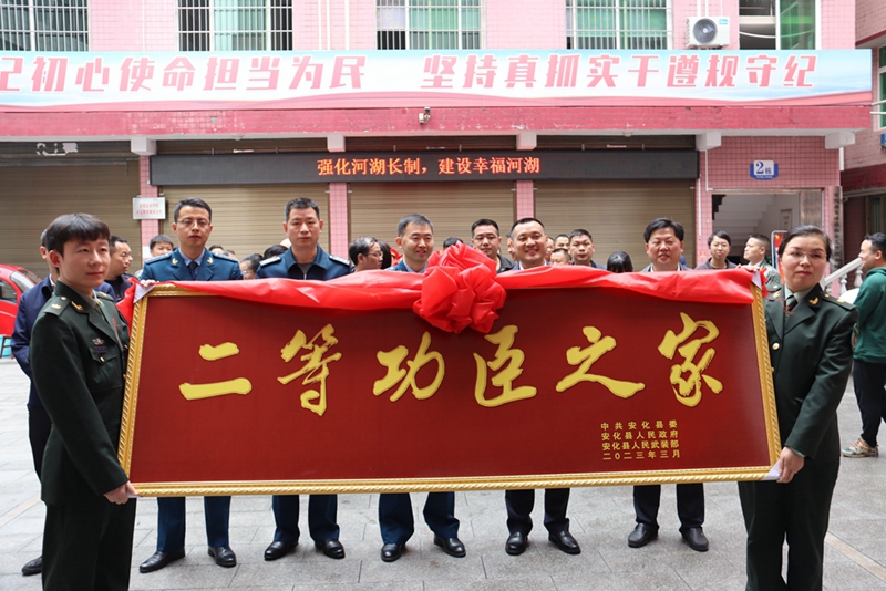 长期以来,东坪镇党委、政府认真贯彻落实习近平总书记关于“让军人成为全社会尊崇的职业”的指示要求,扎实做好拥军优属工作,大力宣传现役军人立功受奖的先进事迹,在全社会营造“学习功臣 崇尚功臣”和“一人立功 全家光荣”的社会风尚,引领全镇广大有志青年把“投身军营,报效国家”和“军营有我,争当功臣”的口号变成行动,自觉为我国的国防事业贡献“东坪力量”。 安化县副县长、县公安局局长张强,县人武部政委蒋斌,县退役军人事务局党组书记、局长吴再连,东坪镇党委副书记、镇长胡国强等人参加立功受奖仪式。