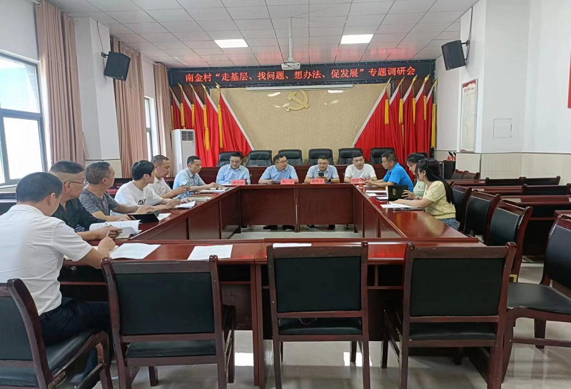 在村会议室,调研组与镇村干部、驻村工作队进行了座谈交流,听取了南金村驻村帮扶工作队队长关于南金村集体经济建设、相关产业发展情况汇报,详细了解了南金村集体经济发展的基本情况、存在的问题、以及对加快村集体经济发展的思考和建议。南金村党总支部书记就调研组关心关注的关于南金村综合服务楼在官新八标撤队后如何安排、冷库规范化使用、如何吸引外地游客前来南金村旅游消费等发展问题进行后续发展设想介绍。调研组对南金村集体经济的发展给予高度的肯定,并希望此次调研能带回很好的调研成果。