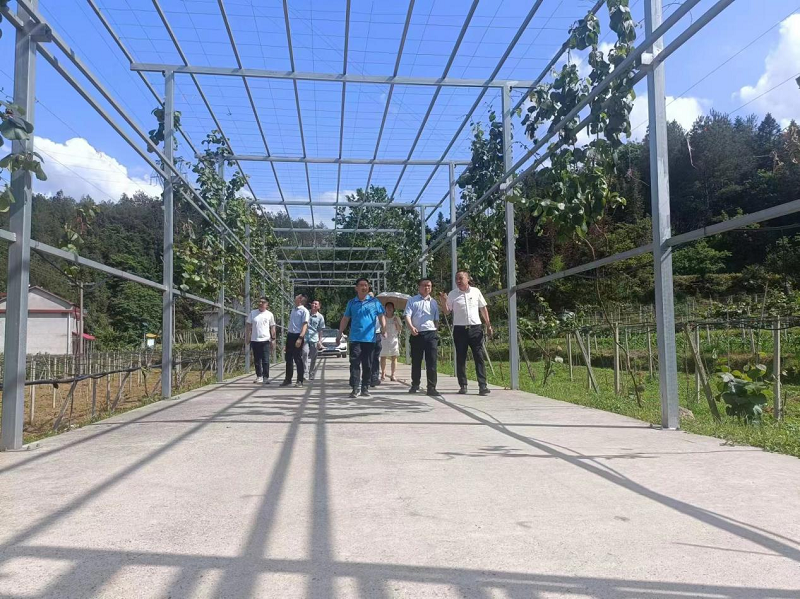 随后,调研组一行到南金村黄桃、猕猴桃基地,温塘美丽屋场开展实地调研。