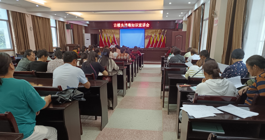 为提高全乡群众防毒识毒意识,打造无毒乡镇,9月21日,古楼乡组织开展禁毒知识宣讲会。乡安委会成员、各村禁毒专干、重点场所负责人等近40人参加会议。
