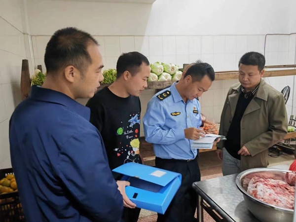 10月24日,高明乡人大主席杨坤和党委委员龙泽军带队,组织市监所、应急办等人员到高明乡各中小学校、幼儿园等食品安全包保单位,现场督导食品安全“两个责任”落实情况。
