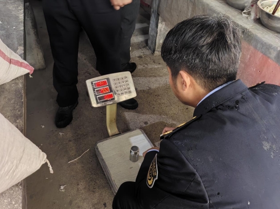 在检查过程中,检查人员对市场内商户使用的电子秤进行逐一检查,检查是否存在缺斤少两和破坏铅封的情况,确保商家计量器具符合国家标准。同时,检查人员向农贸市场经营商家宣讲计量法律法规知识,引导商家自觉遵守电子秤的使用规范和定期检定。
