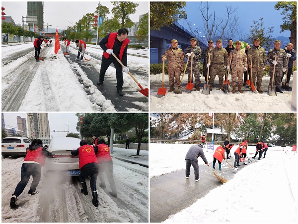 铲雪清障,畅通交通。组织党员干部、民兵、村(社区)志愿者、群众等对辖区主干道、路口、重点区域开展铲雪清障行动,并在危险路段设置警示标志,实时监控道路通行情况,强化应急保障措施;紧急调用一台铲雪车辆,大范围清理路面积雪、进行防冻撒盐;组织青年志愿者成立“爱心助推”小分队,主动上前解救被困车辆,保障道路畅通和群众出行安全。