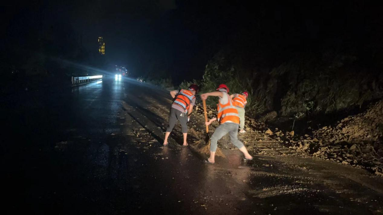 晚上九点,党员突击队员们依然在路边忙碌着,他们手持铁铲,快速清理着路面上的落石、树枝,为夜间行驶的人们开辟出一条条安全通道。防汛期间,江南交通运输事务所联合镇应急、执法等部门组成突击小队针每日对G536公路沿线、高边坡等风险路段开展夜间巡查排查,及时清通道路,确保道路安全通畅。