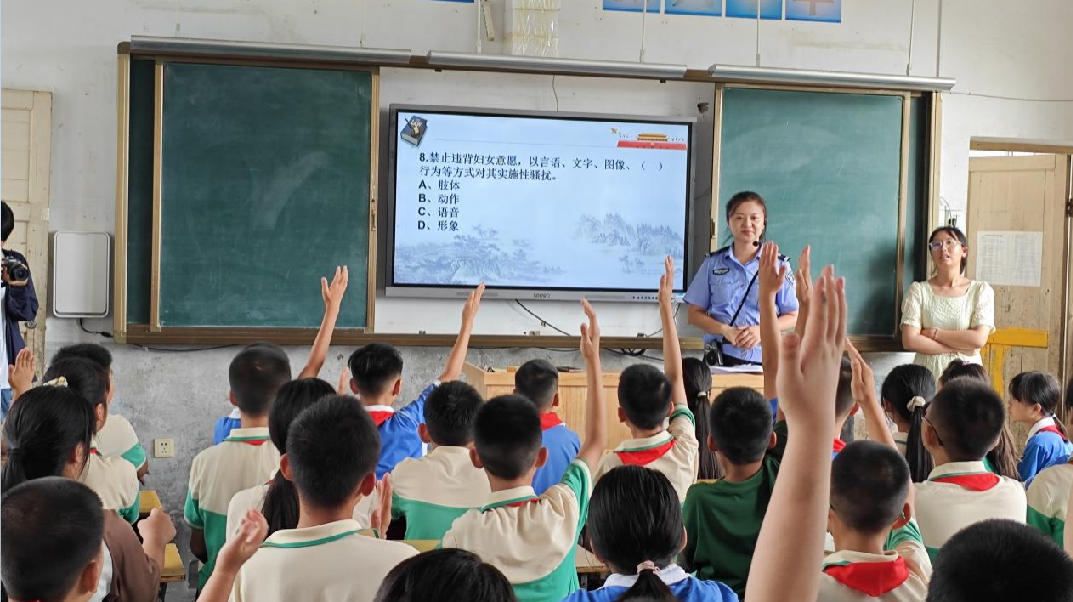 为进一步提高未成年人安全防范意识和自我保护能力,9月3日,县教育局、县公安局、县司法局、县妇联、团县委、奎溪政府等单位在木榴完小联合开展利剑护蕾、反诈、禁毒等宣传。