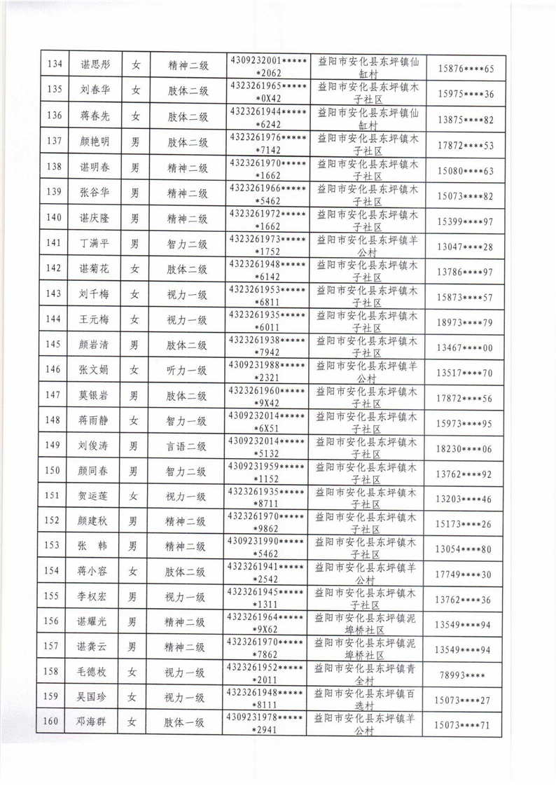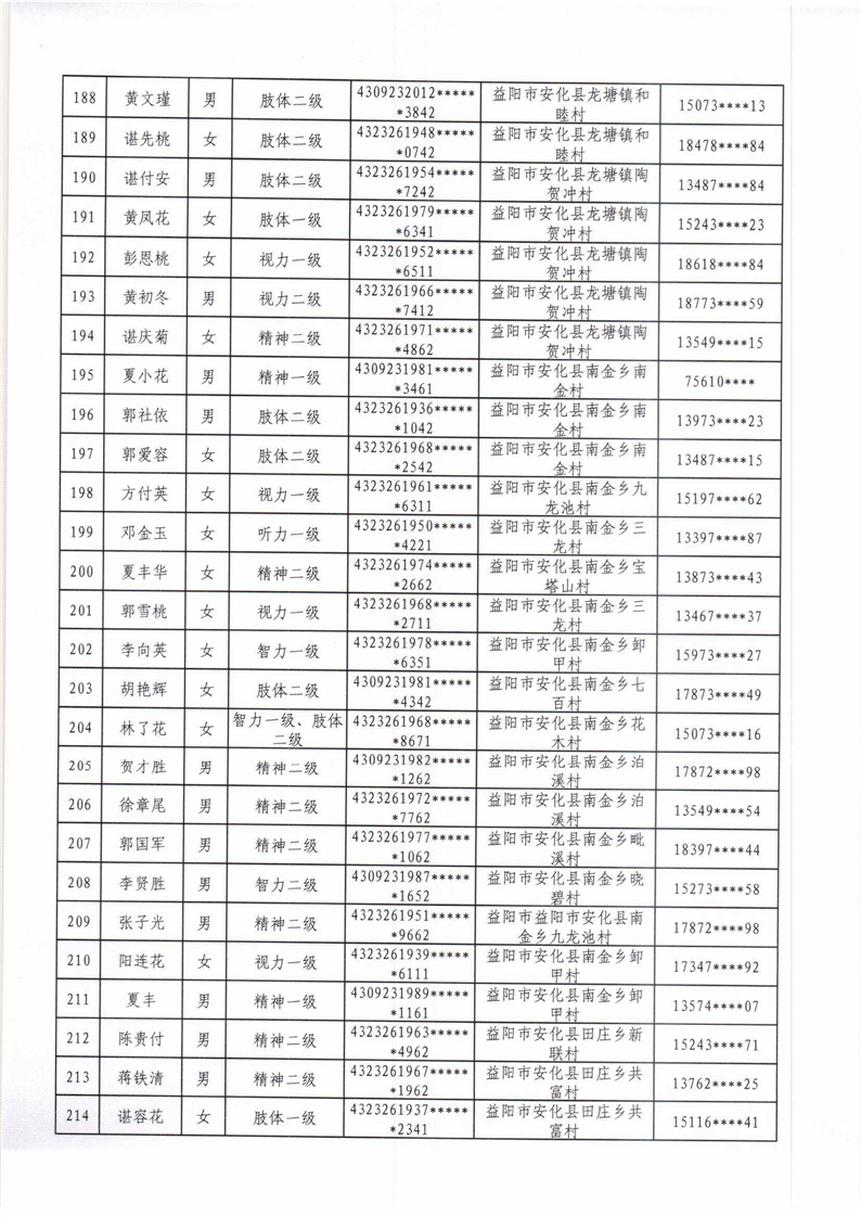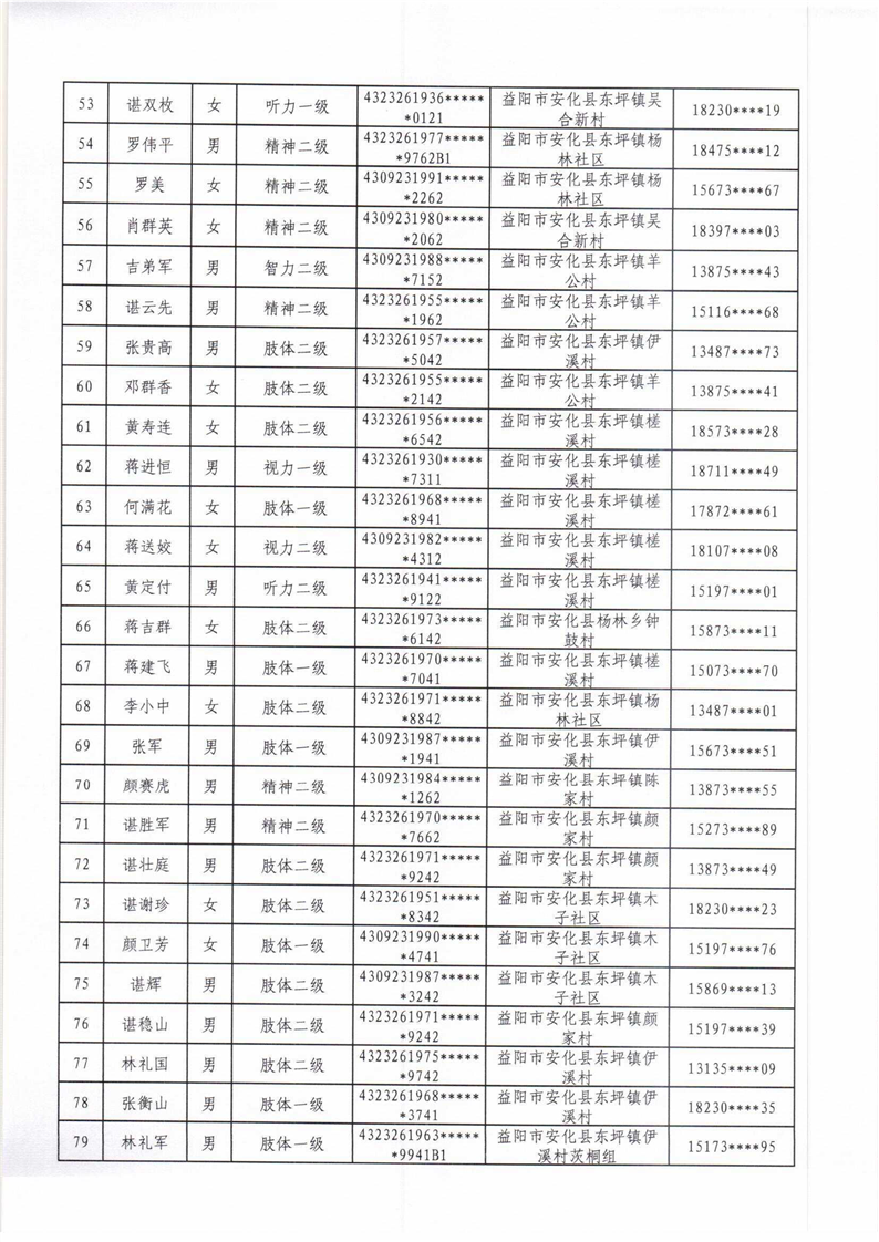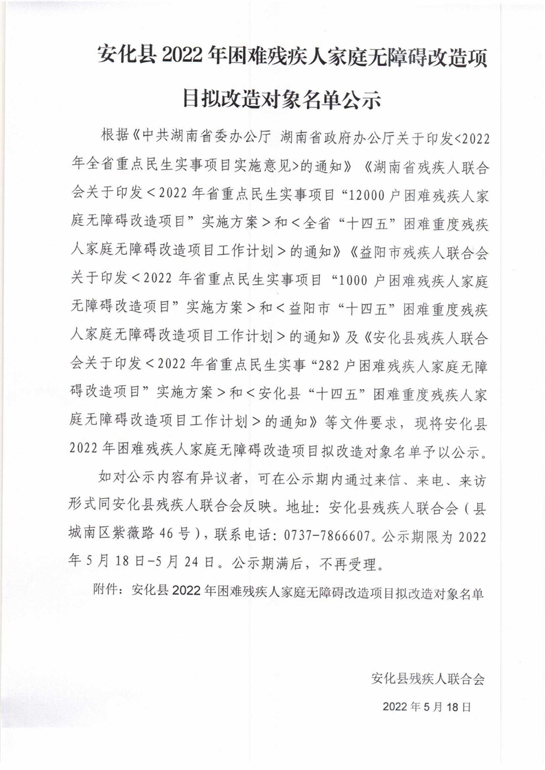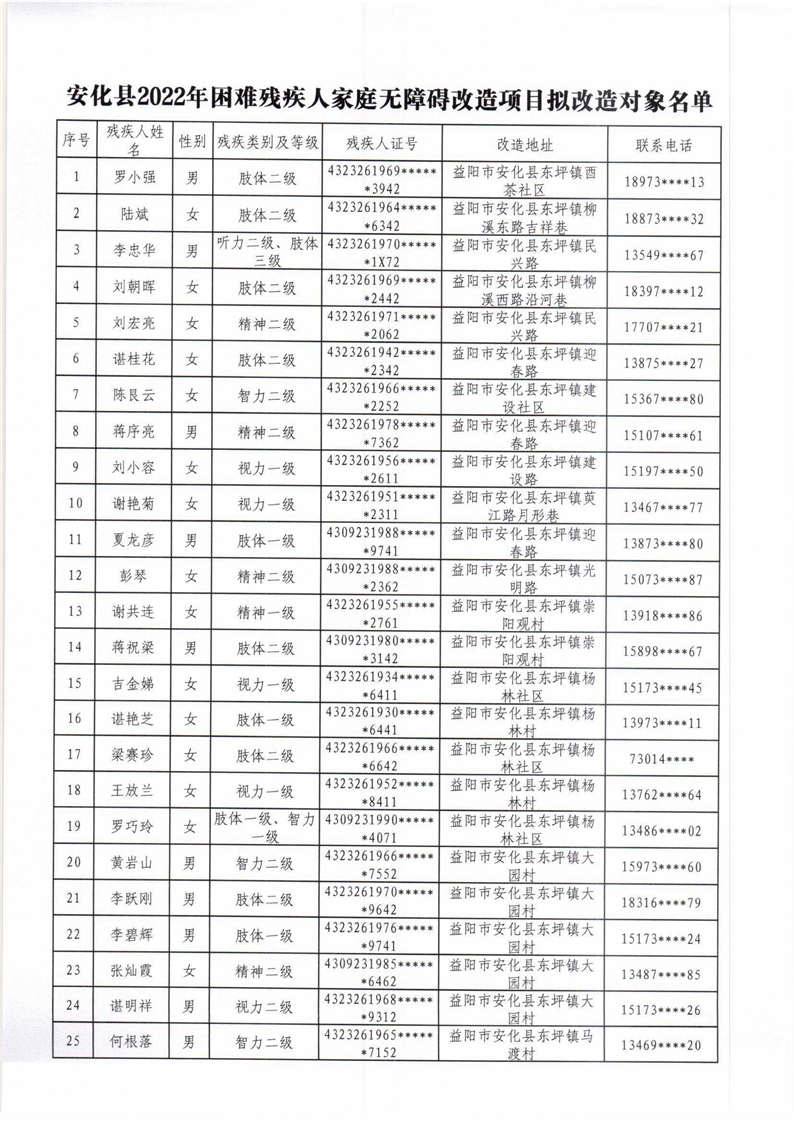 安化县2022年困难残疾人家庭无障碍改造项目拟改造对象名单公示