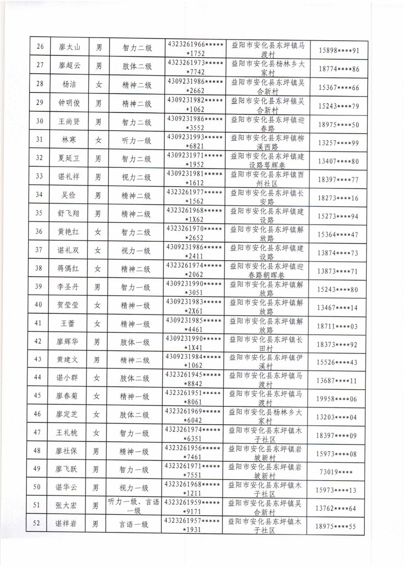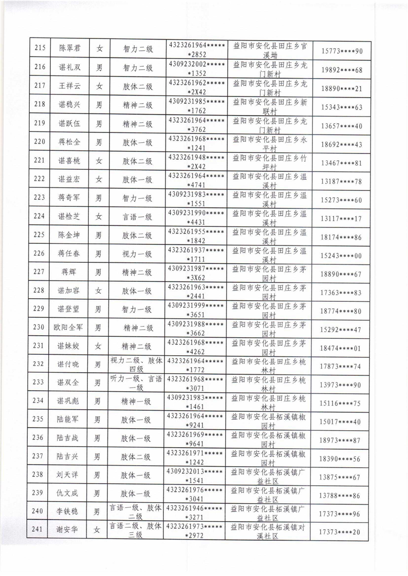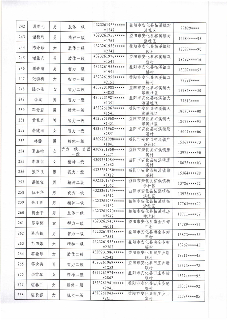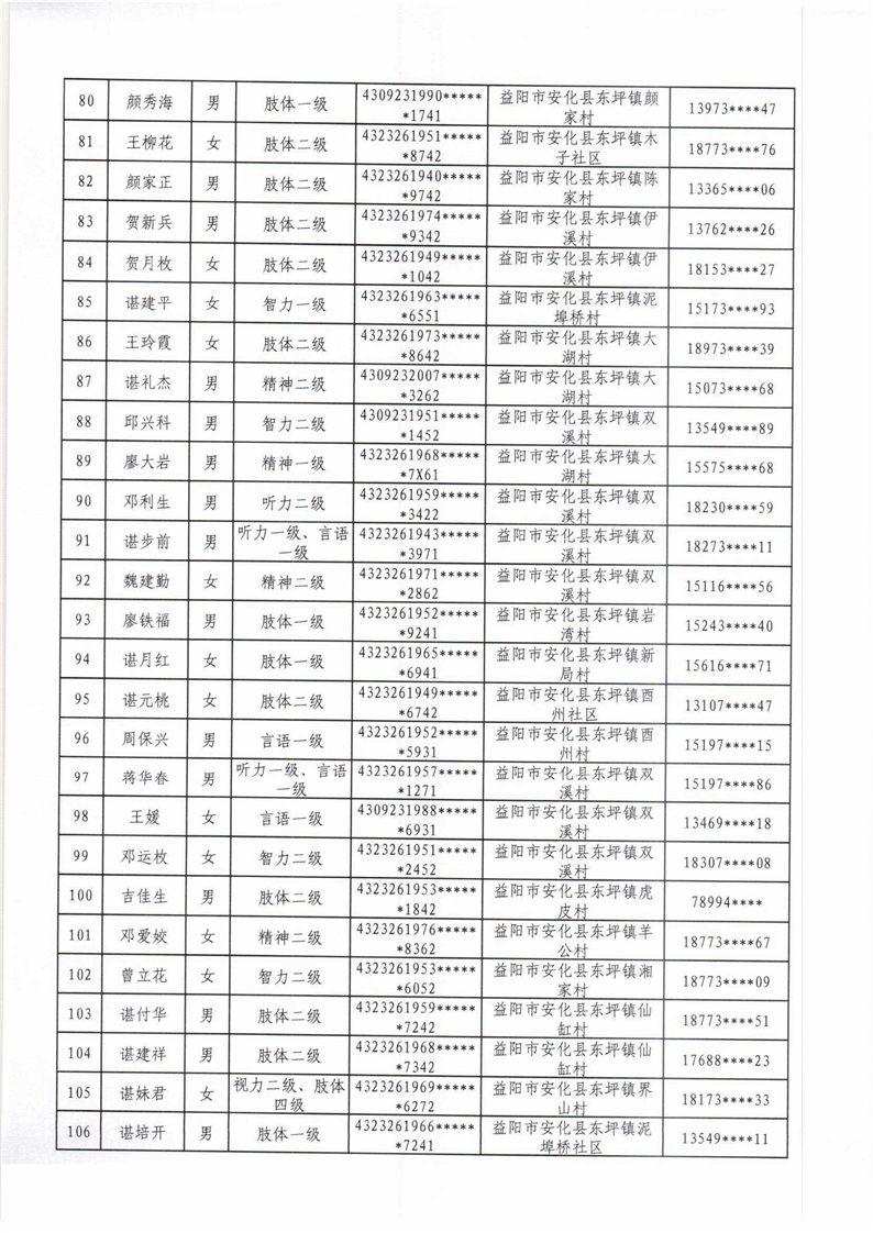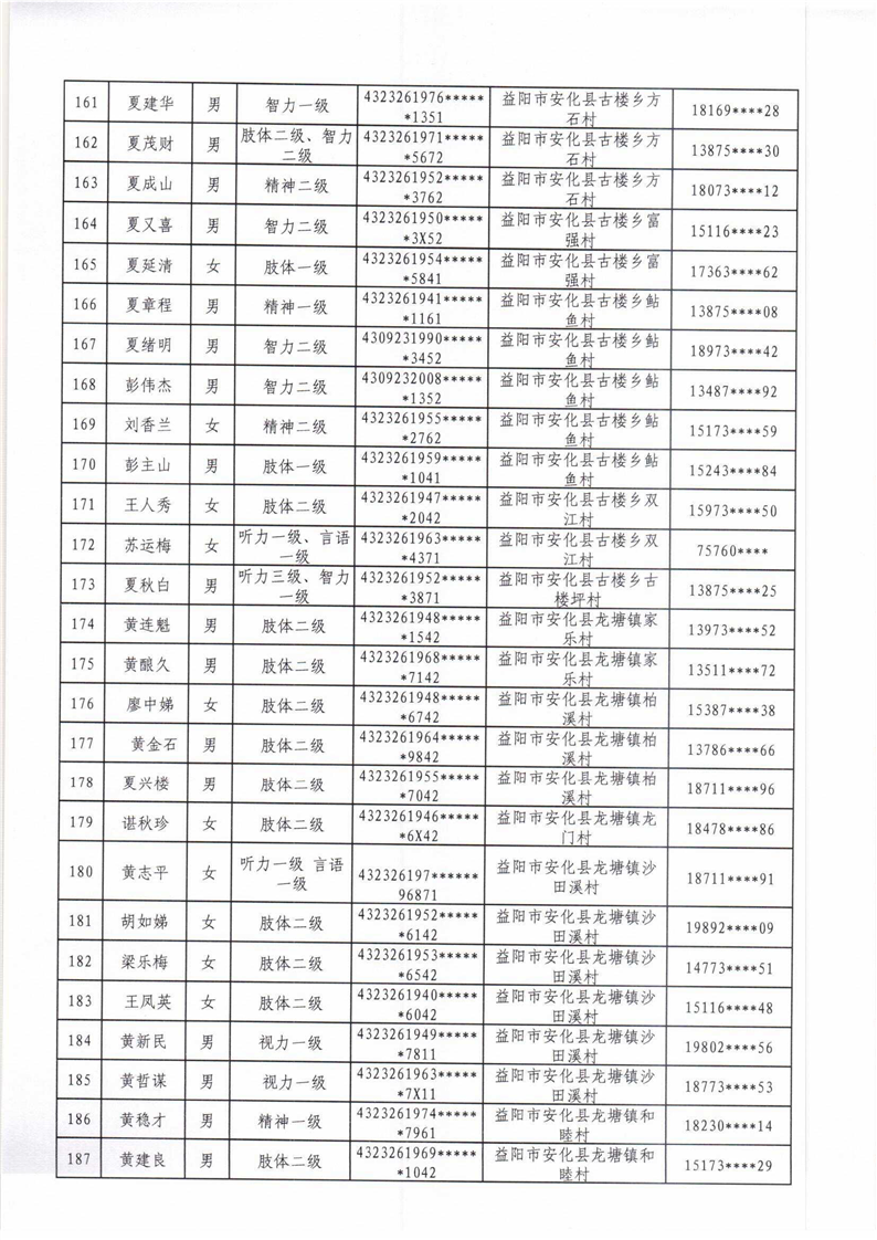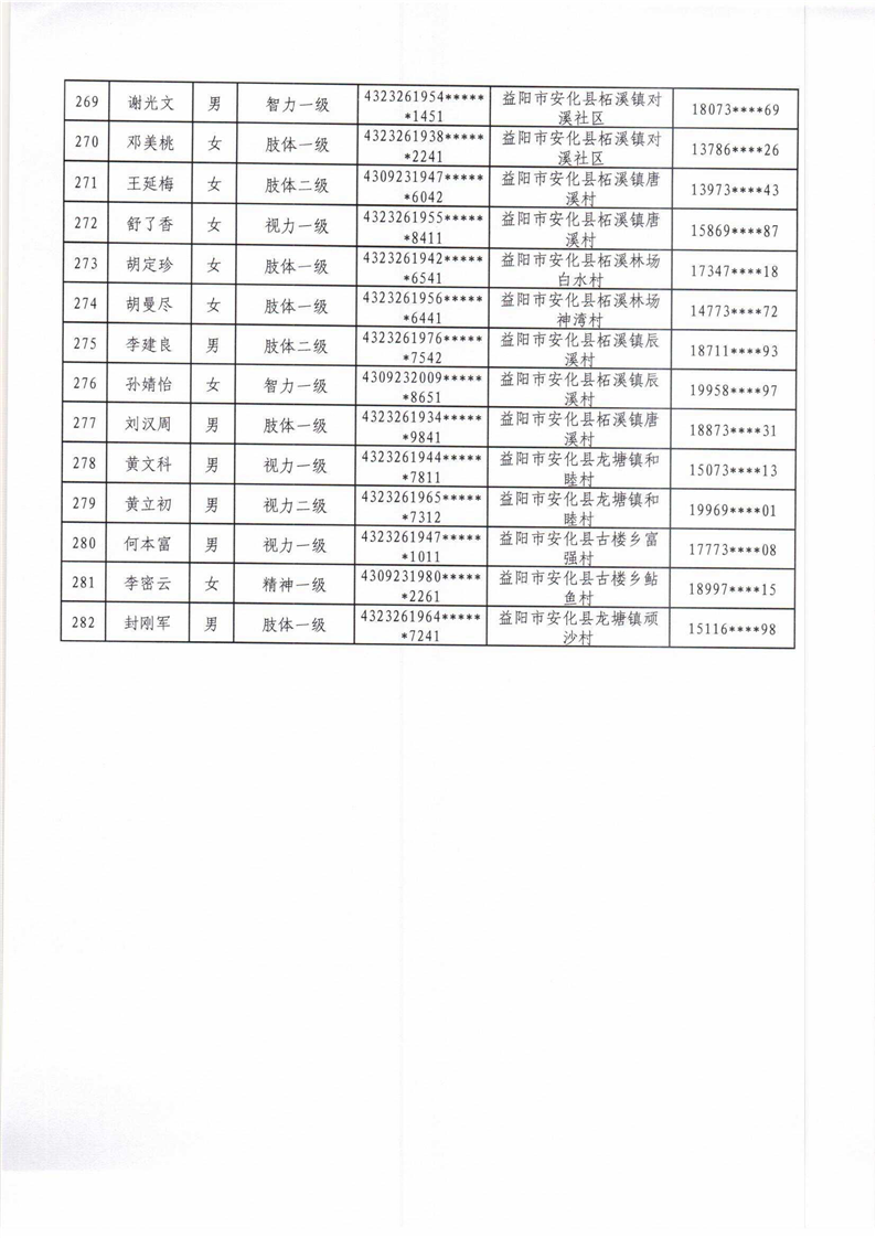 安化县2022年困难残疾人家庭无障碍改造项目拟改造对象名单公示