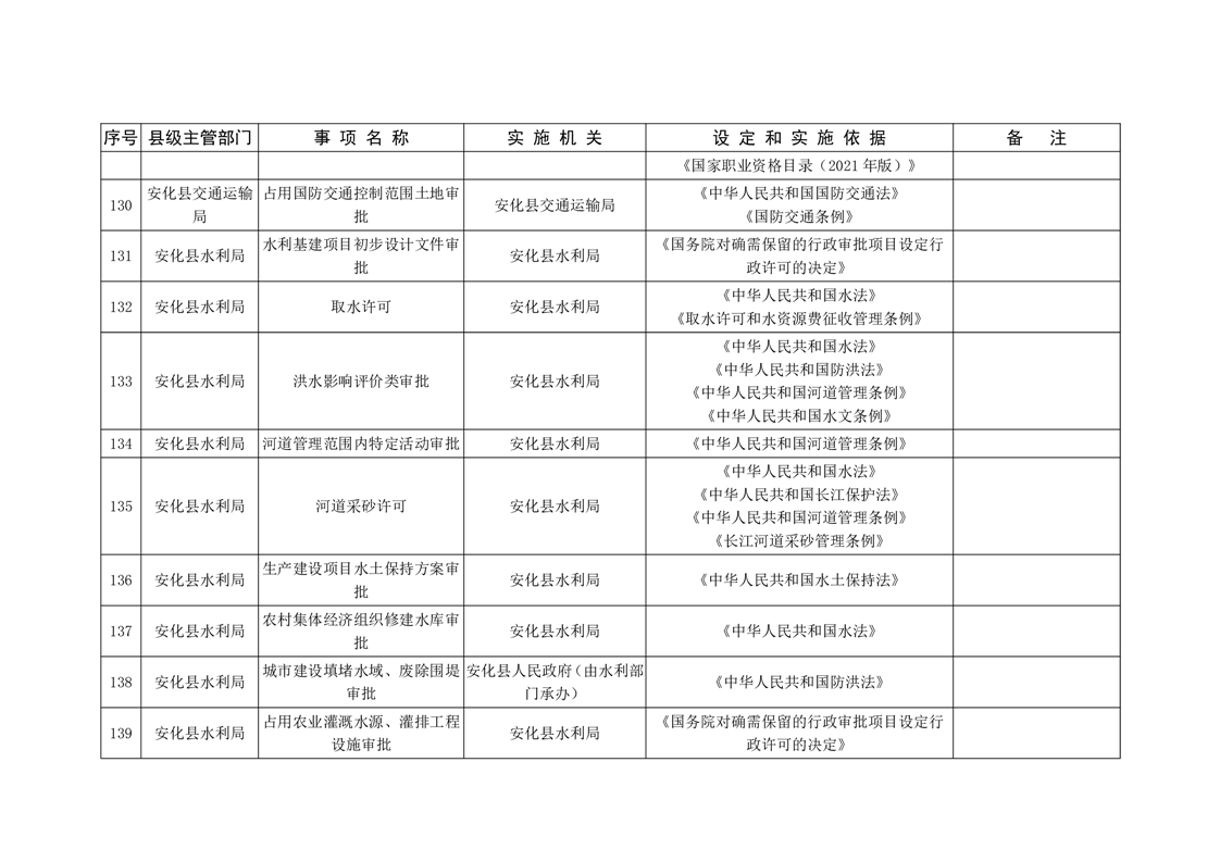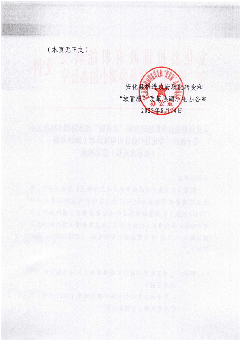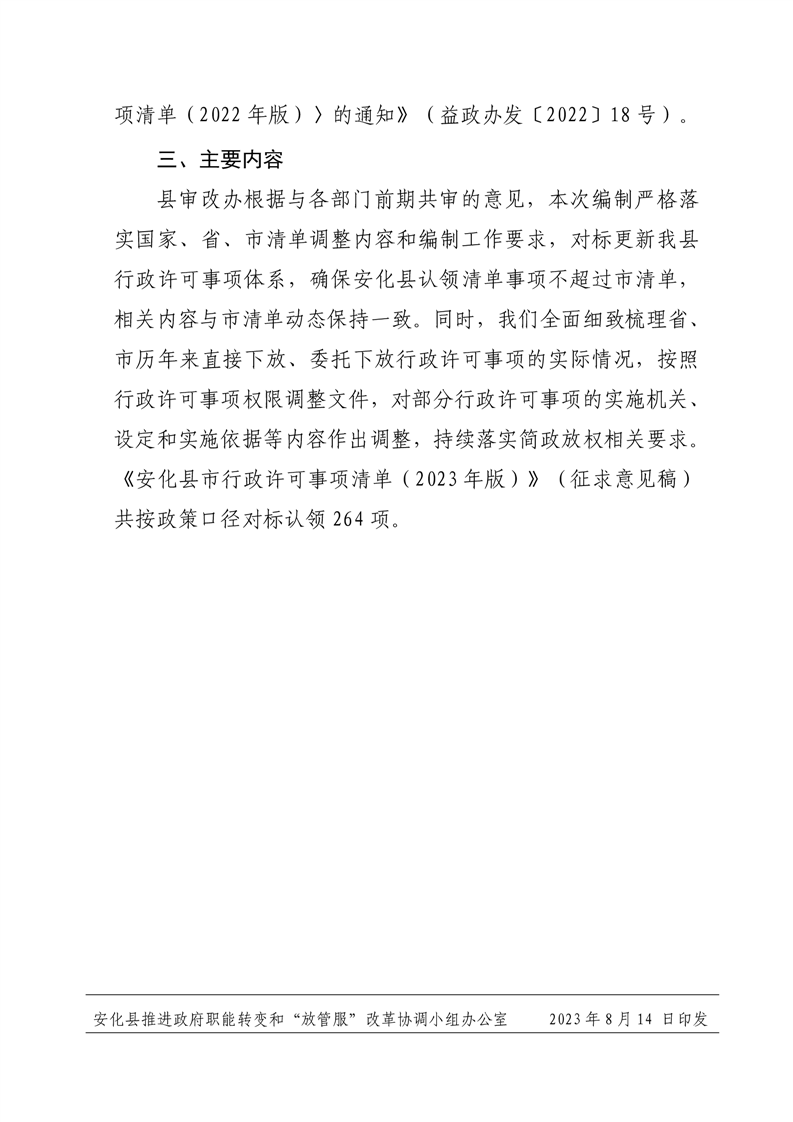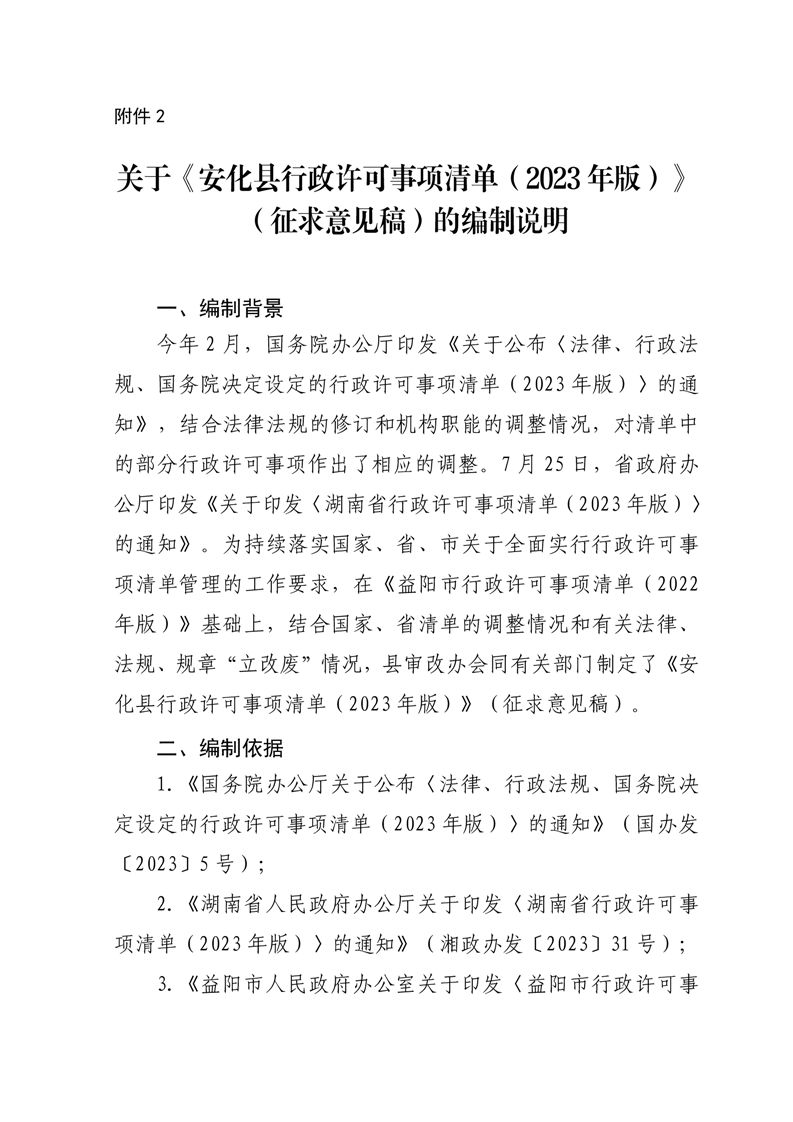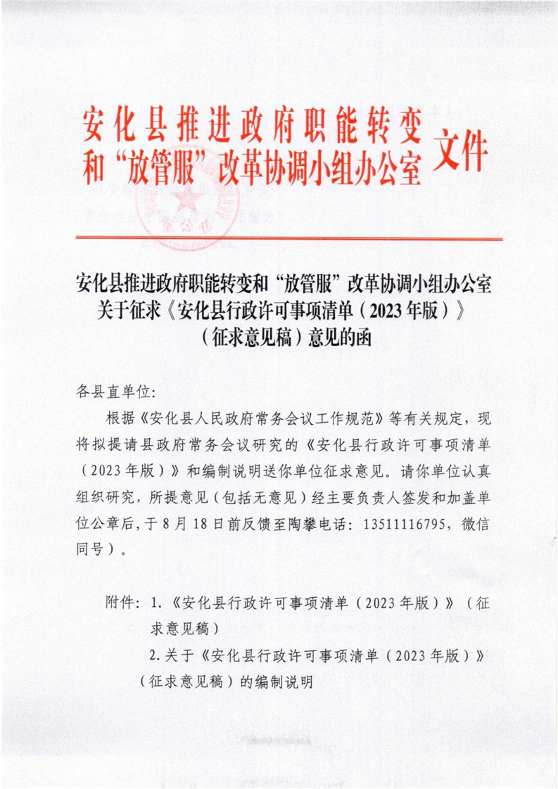 关于征求《安化县行政许可事项清单(2023年版)》(征求意见稿)意见的函