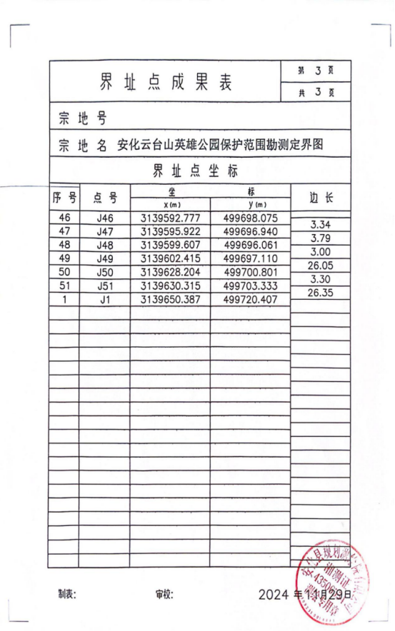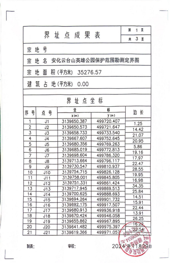 附件 1 安化云台山英雄公园保护范围勘测定界图