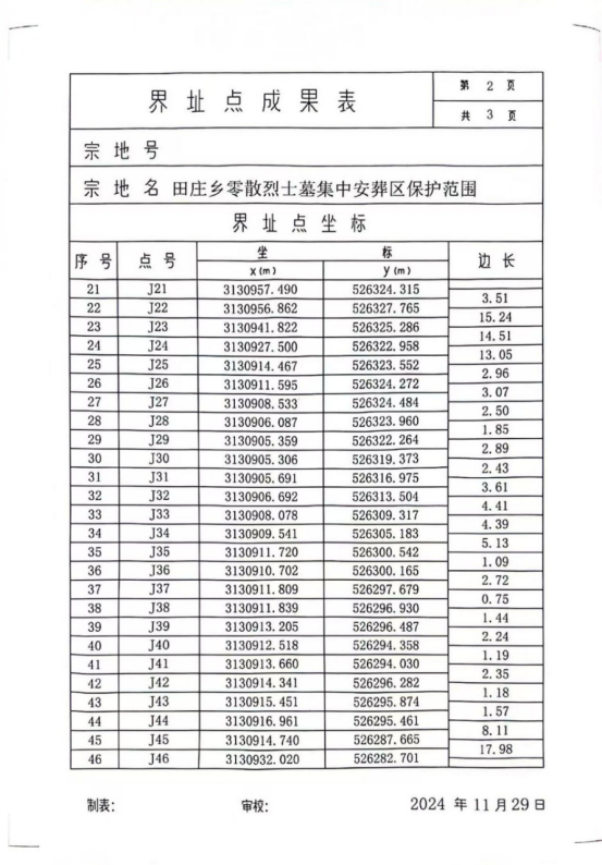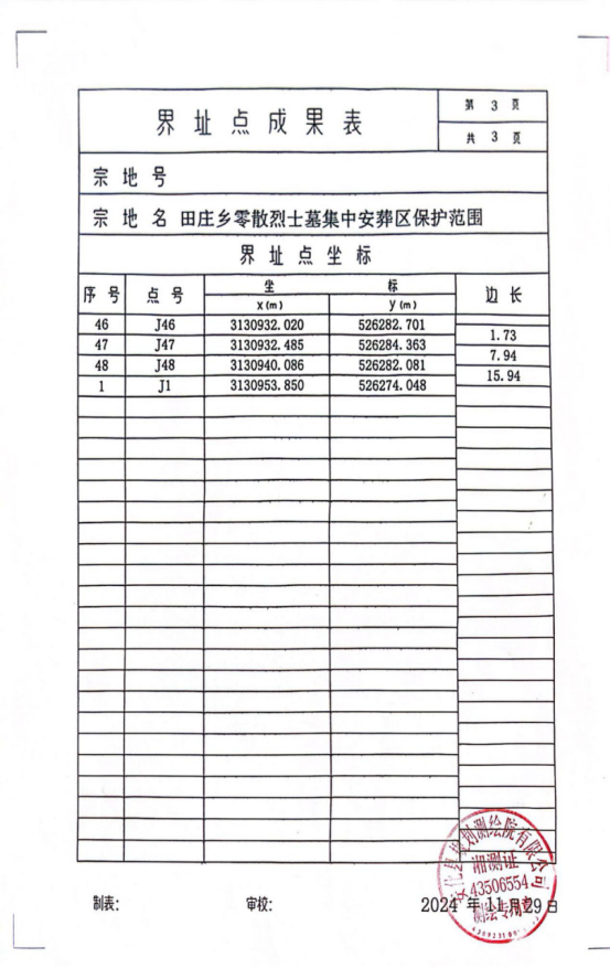 附件 2 田庄乡零散烈士墓集中安葬区保护范围勘测定界图