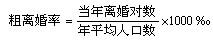 粗离婚率 指某地区当年离婚对数占该地区年平均人口的比重。计算公式为: