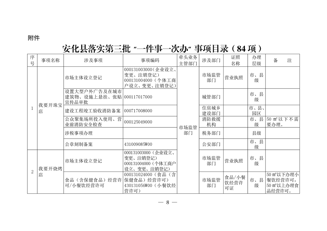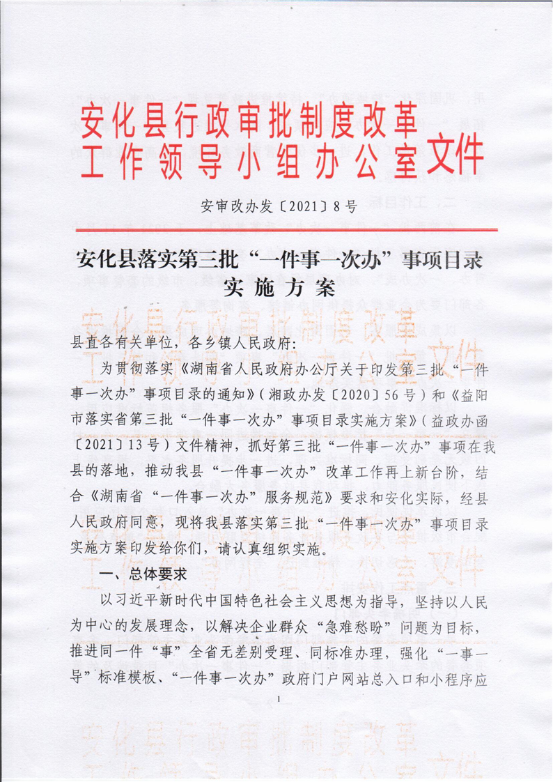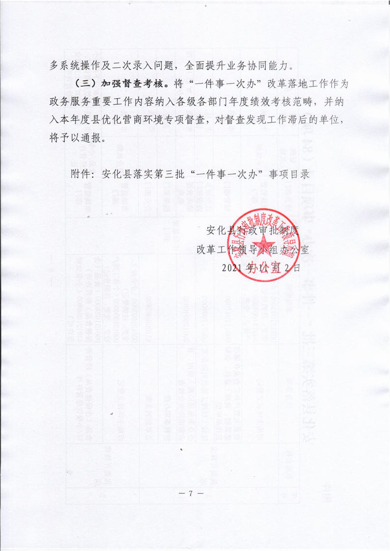 安化县落实省第三批“一件事一次办”事项目录实施方案