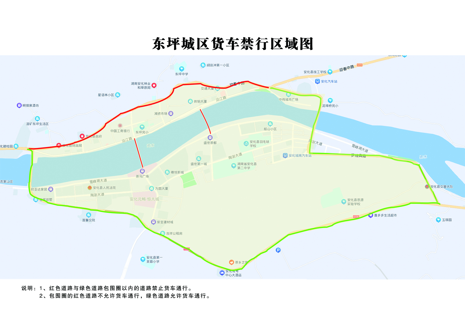 迎春路与G536城南线合围区域内禁止所有过境货车通行(低水坝与G536城南线,资江路、资江一桥与罗绕典路可通行)