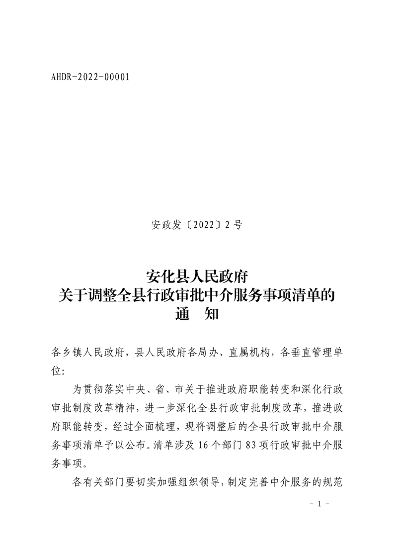 政策解读《安化县人民政府办公室关于调整 全县行政审批中介服务事项清单的通知》