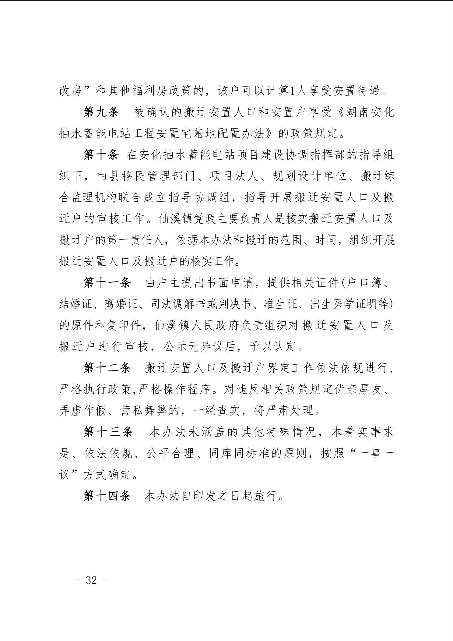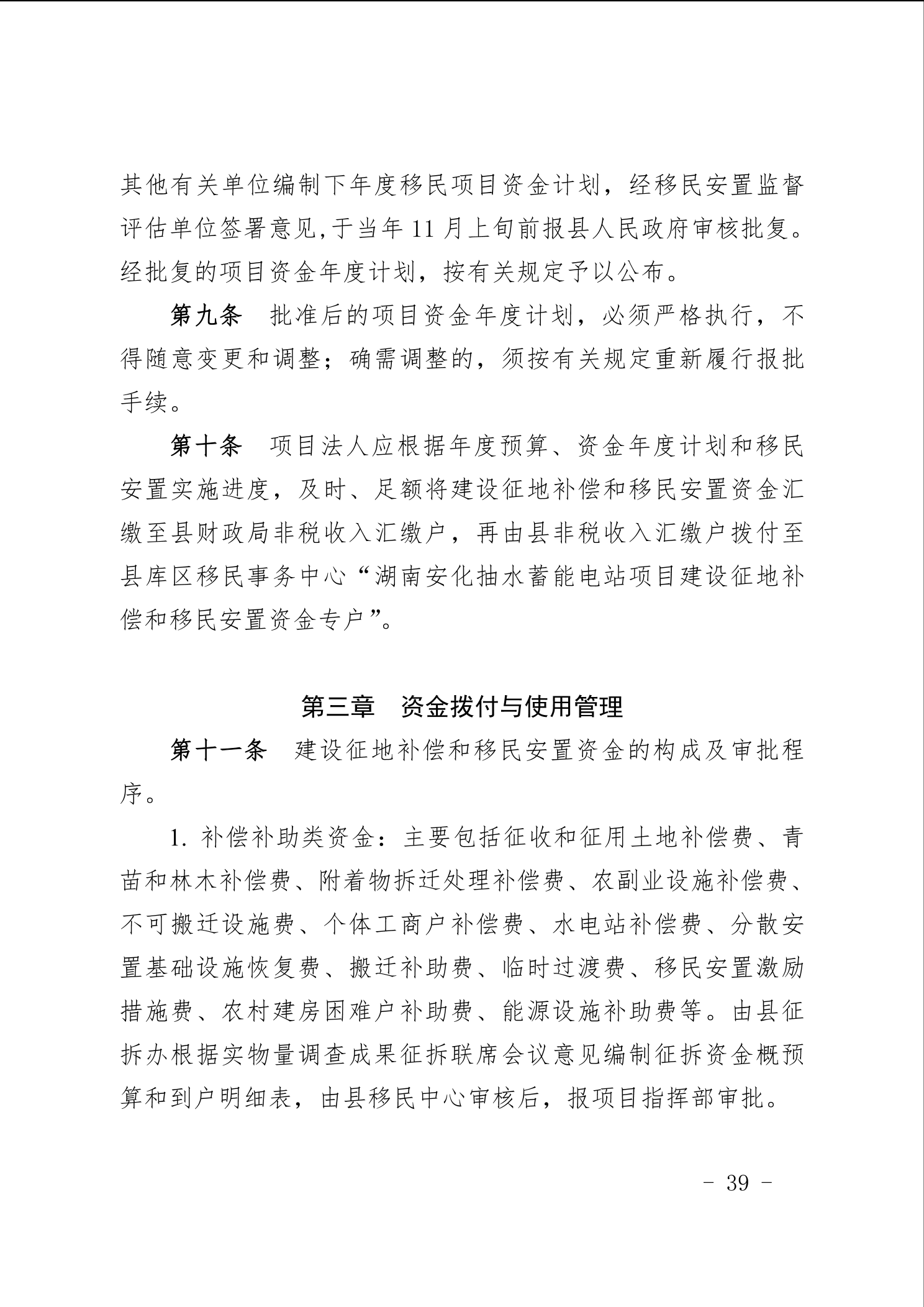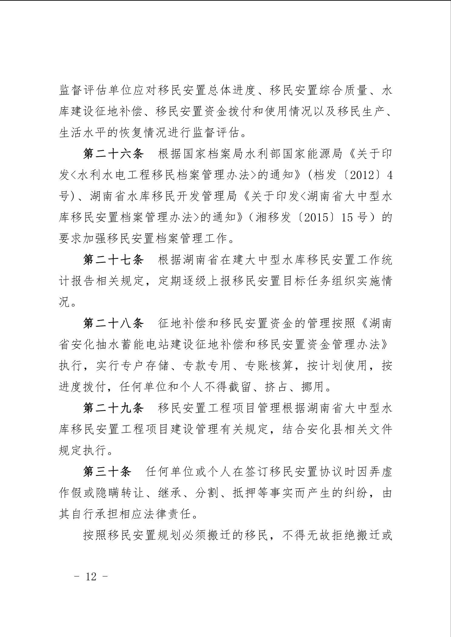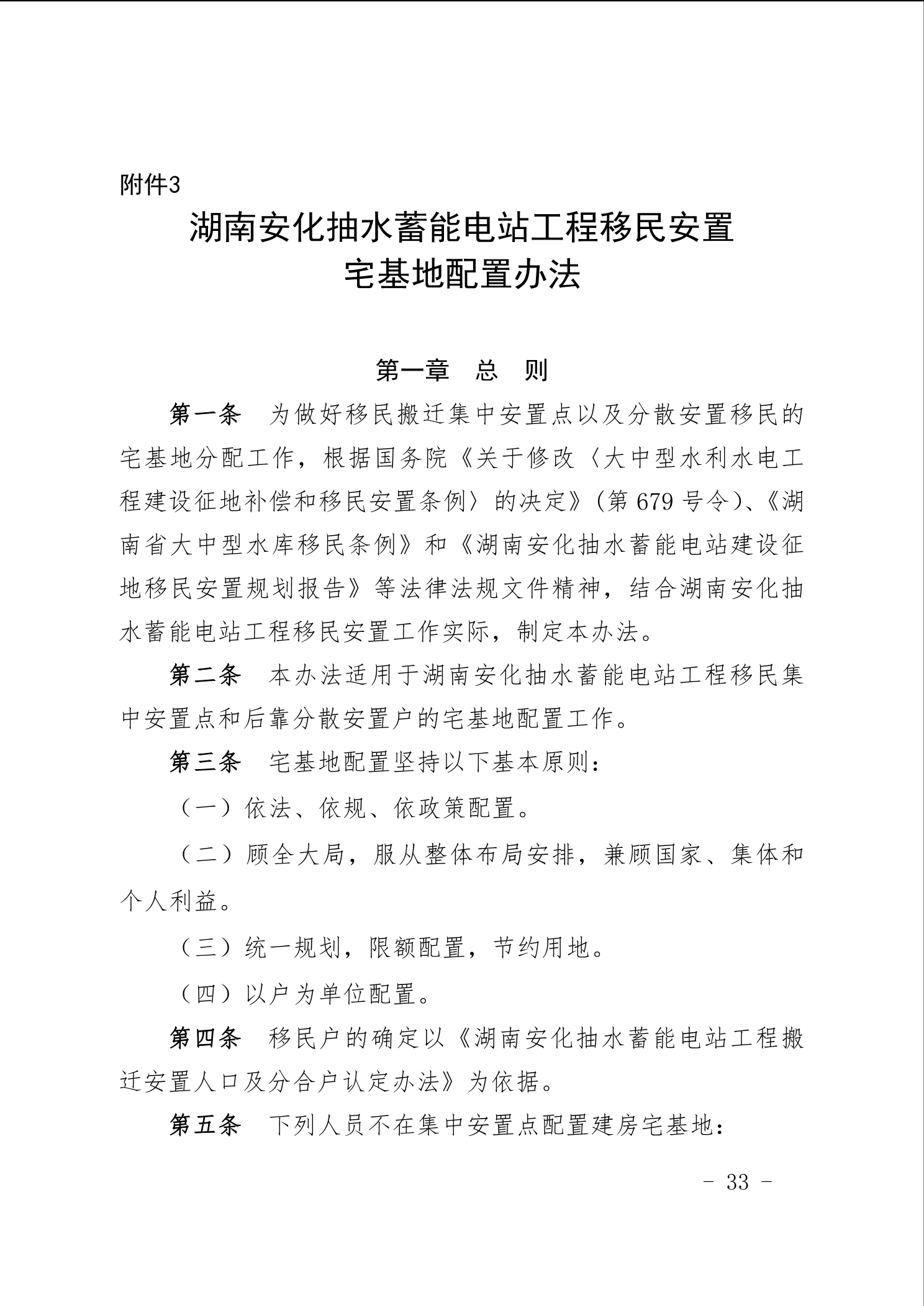 关于印发《湖南安化抽水蓄能电站工程建设征地补偿和移民安置实施管理办法》《湖南安化抽水蓄能电站工程搬迁安置人口及分合户认定办法》《湖南安化抽水蓄能电站工程移民安置宅基地配置办法》《湖南安化抽水蓄能电站工程建设征地 补偿和移民安置资金管理办法》的通知