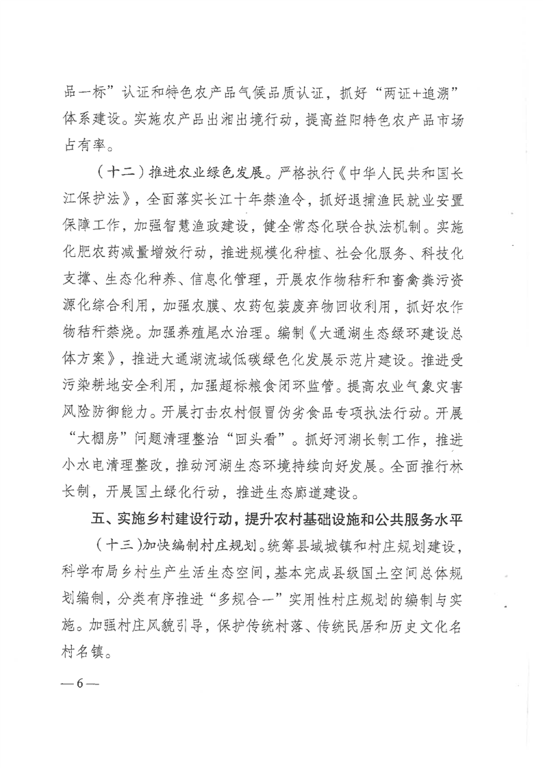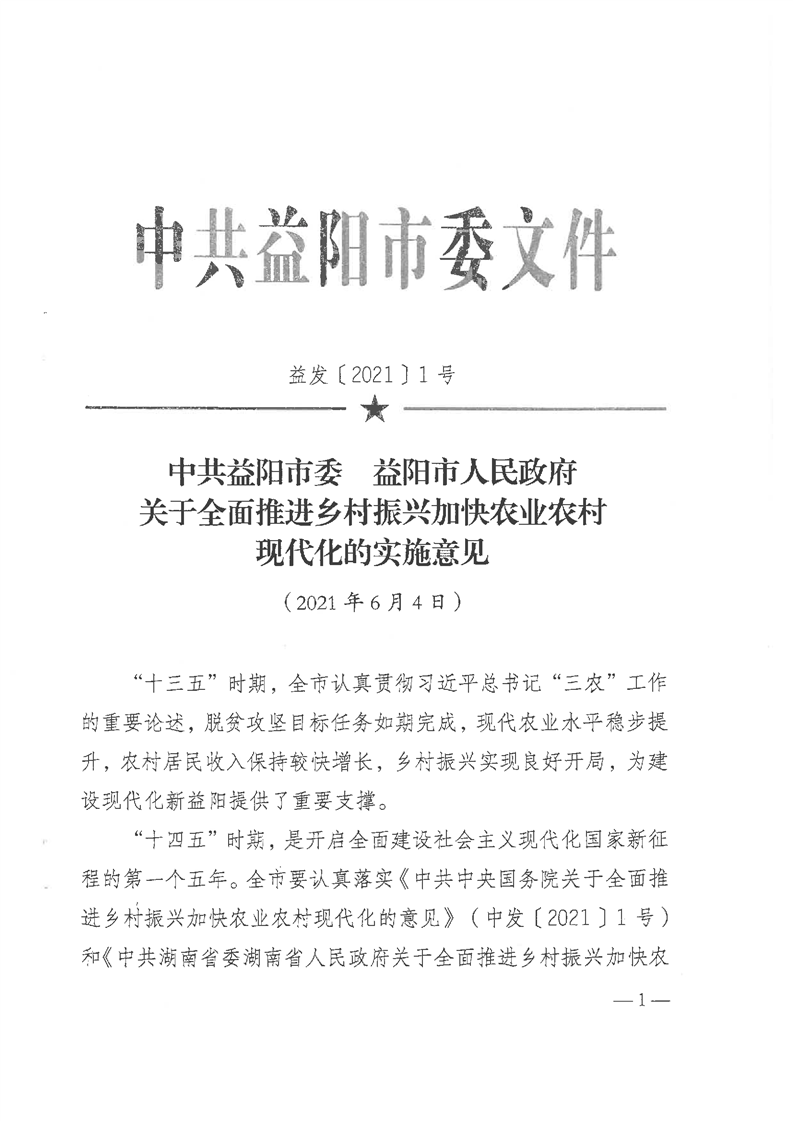 中共益阳市委益阳市人民政府关于全面推进乡村振兴加快农业农村现代化的实施意见