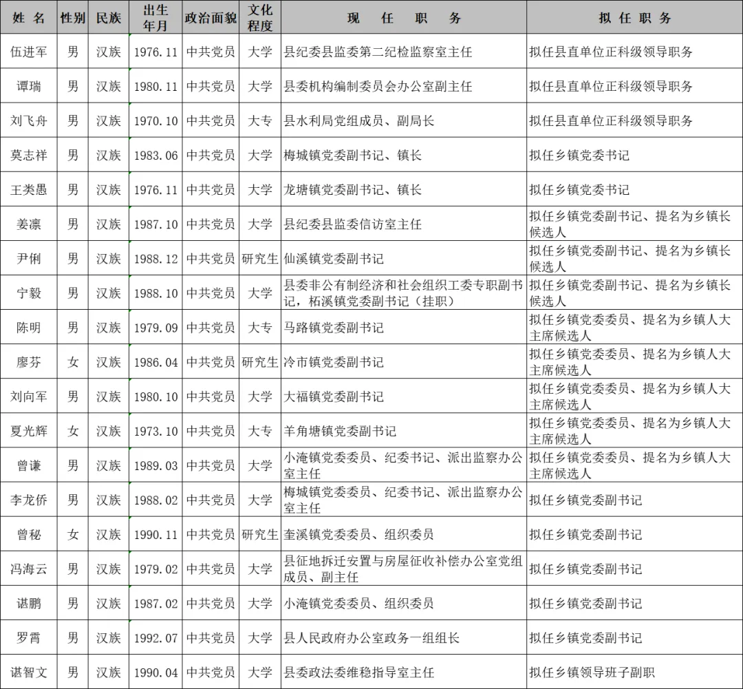 为了加强对干部选拔任用工作的监督,提高识别和任用干部的准确程度,现对县委常委会议研究决定的拟任职人选(提名人选)进行任前公示。