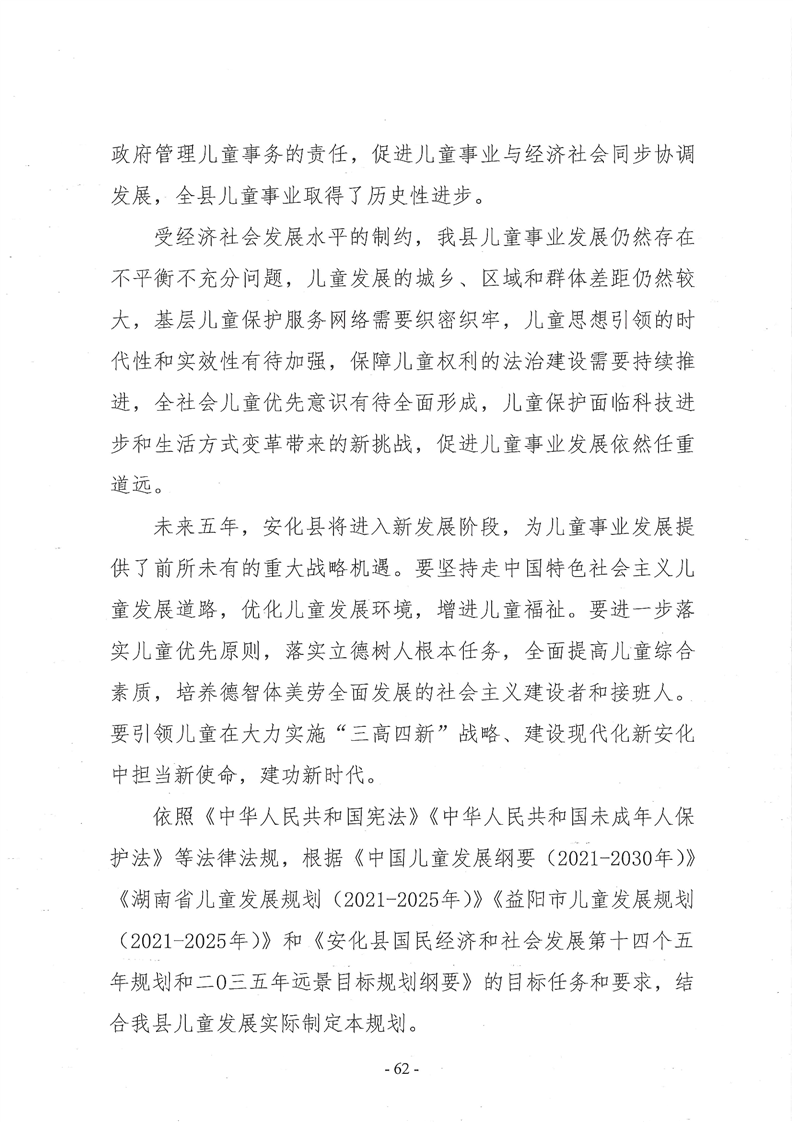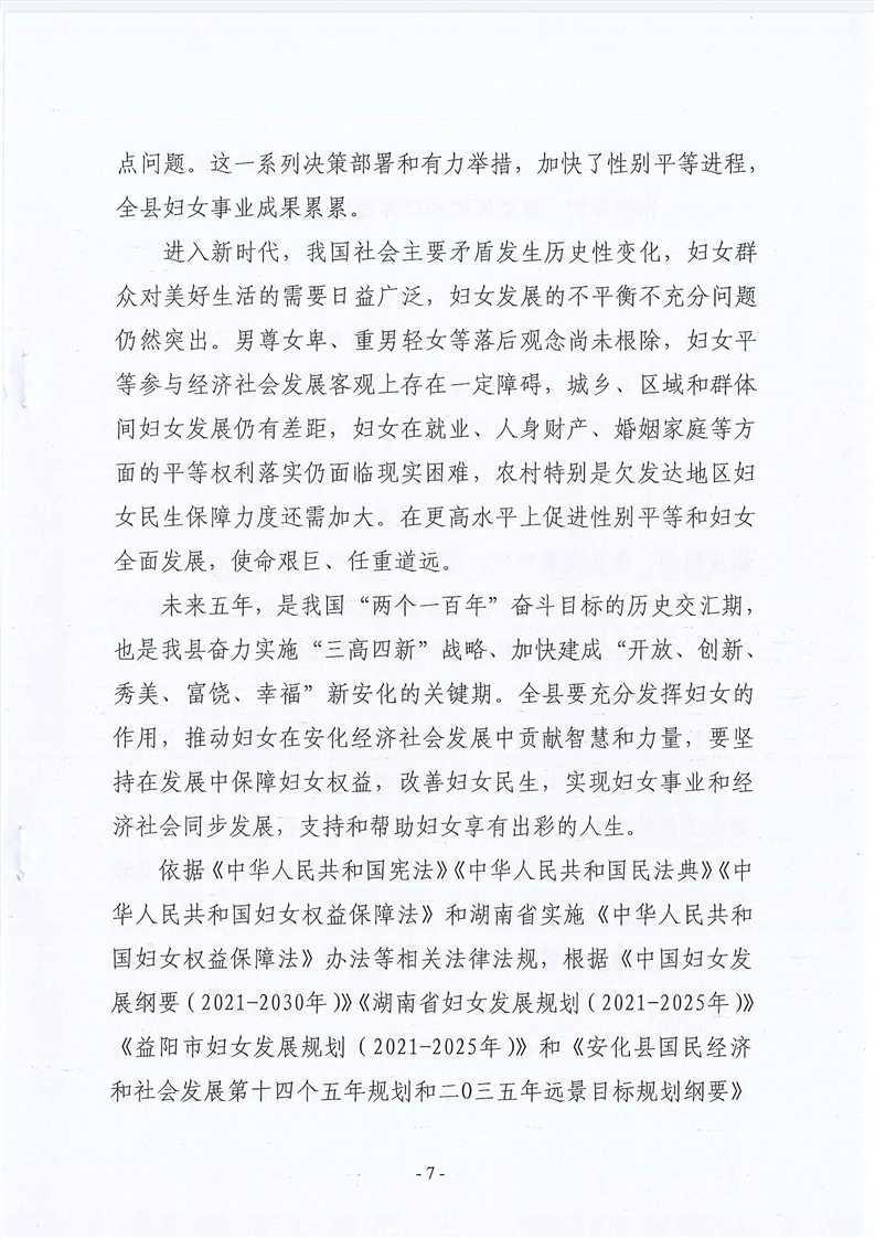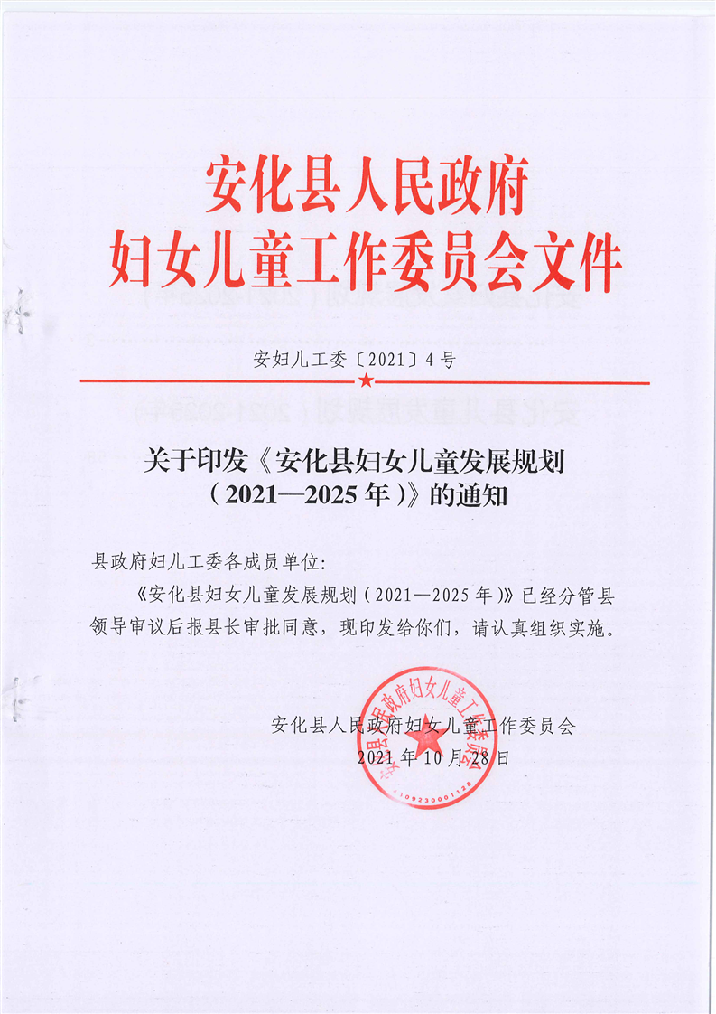 关于印发《安化县妇女儿童发展规划(2021-2025年)》的通知
