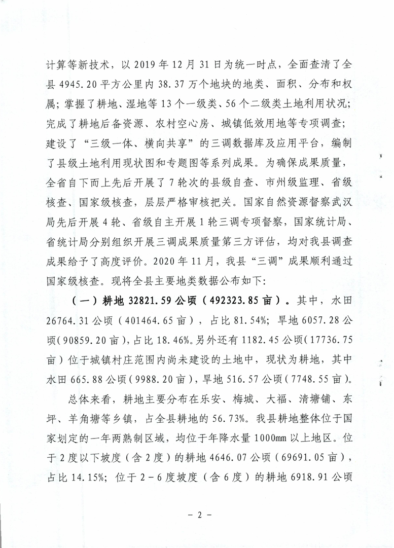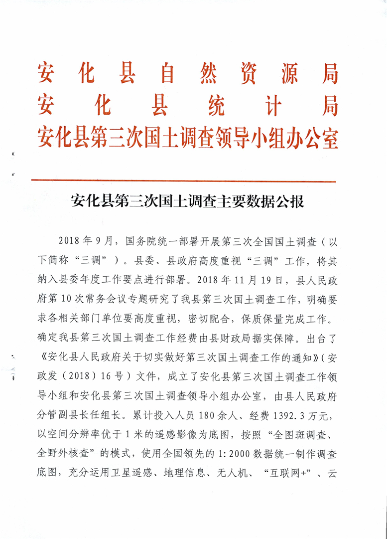 安化县第三次国土调查主要数据公布