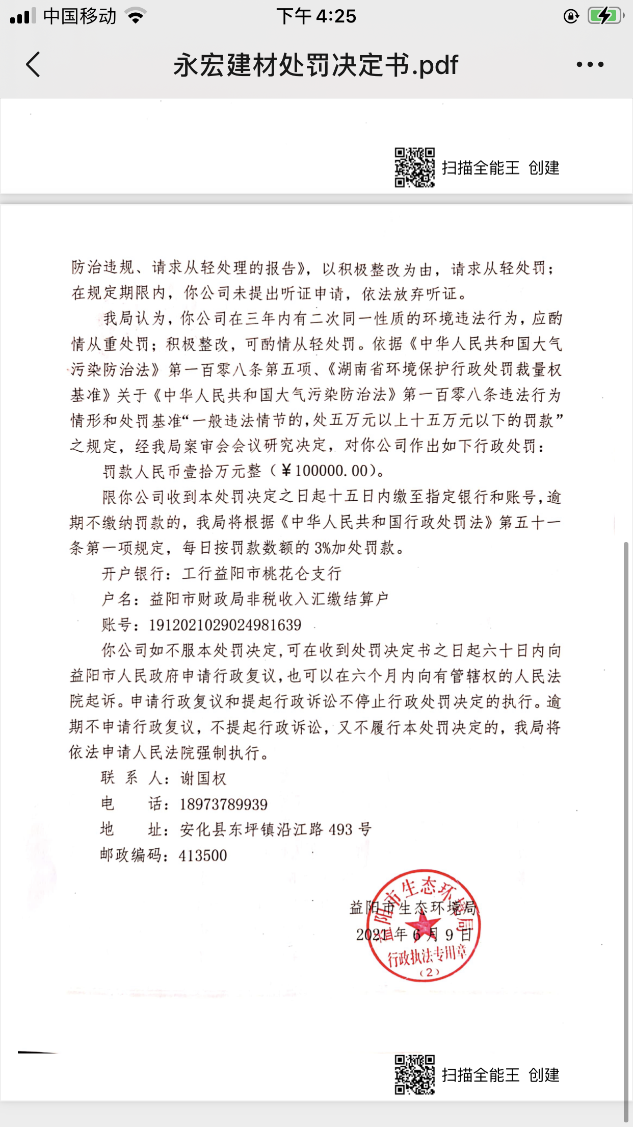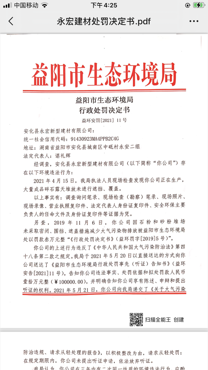 益阳市生态环境局行政处罚决定书益环安罚(2021)11号